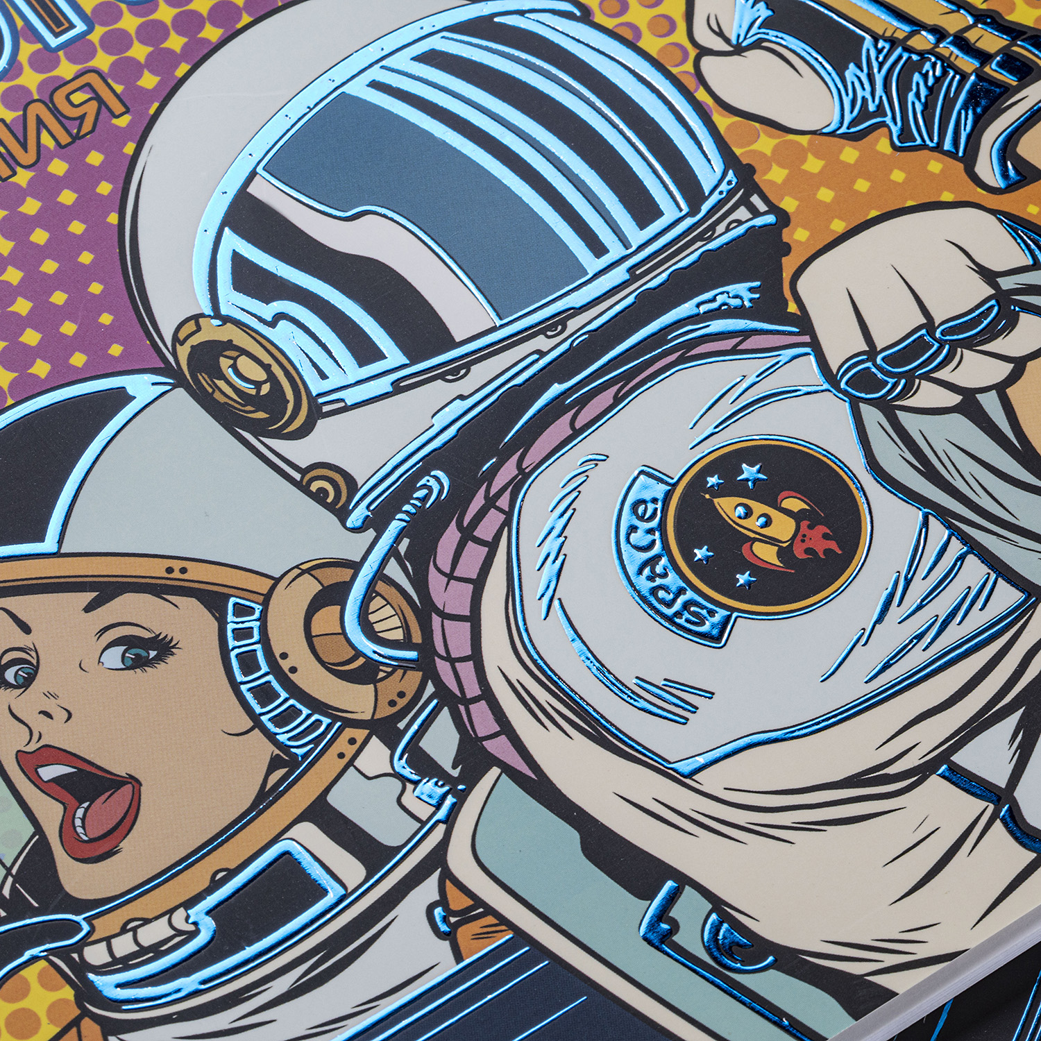 Дизайны выполнены в необычном стиле, чем-то напоминающем старые киноафиши в миксе со спейс-диско. Наши персонажи в ярких космических костюмах в окружении переливающихся лучей и световых эффектов выглядят футуристично. Эффект 3D-фольги на матовой ламинации особенно подчёркивает весь блеск дизайнерского решения и наполняет неповторимое пространство загадочного космоса энергией.
