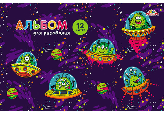 ТМ «Апплика» представляет новые дизайны альбомов для рисования. Альбомы выпускаются ф формате А4 и содержат 12 листов. Внутренний блок выполнен их высококачественной офсетной бумаги плотностью 100 г/кв. м. Обложка из мелованного картона с полноцветной печатью. Крепление — скоба.