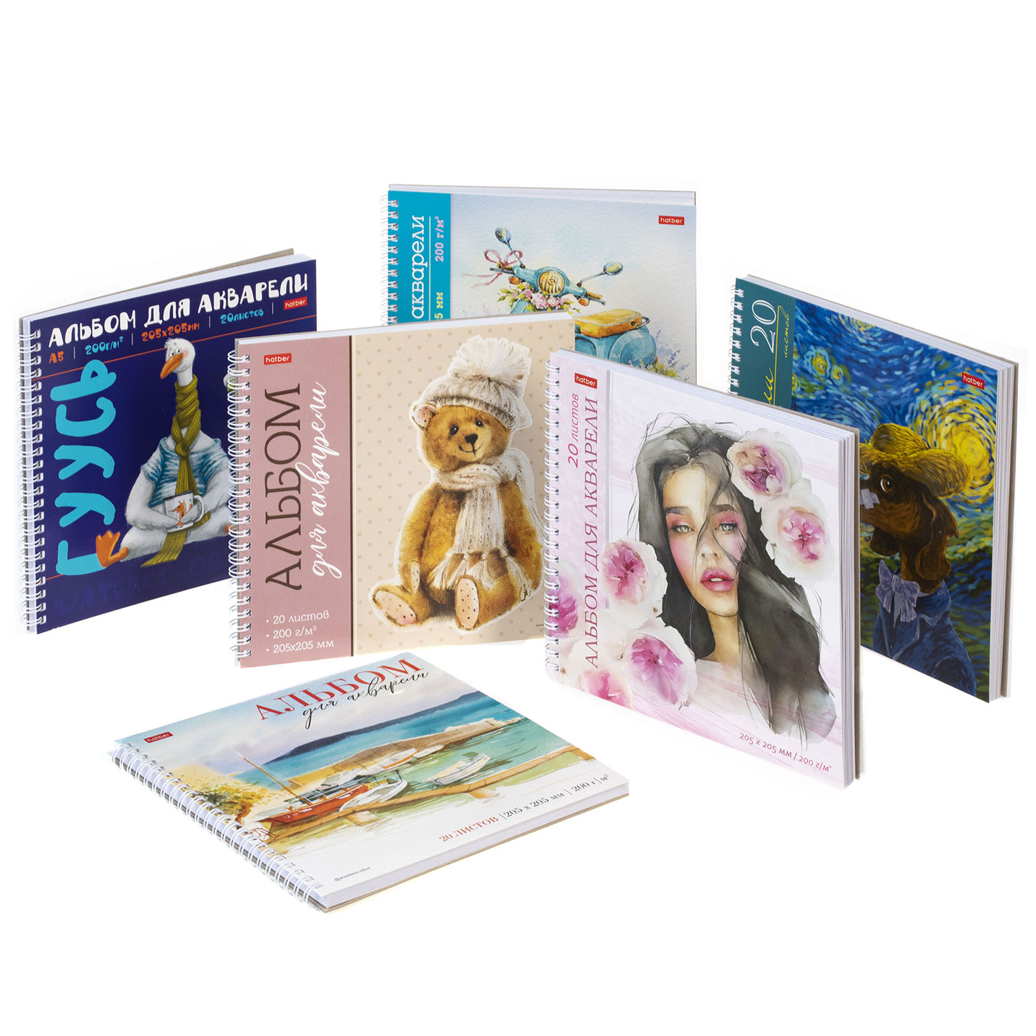 Представляем вам новые альбомы для рисования акварелью А5-формата (205х205 мм) 20 листов на гребне. Удобный формат c жёсткой подложкой делает альбом мобильным и убережёт ваши шедевры. Внутренний блок плотностью 200 г/кв. м подходит для рисования акварельными красками, акварельными карандашами, гуашью и фломастерами, не ограничивая вас в творчестве. Дизайны обложек очень разнообразны, каждый сможет выбрать то, что ему по вкусу. А тиснение оригинальной фактуры придаёт новинке особую привлекательность, делая изделие не просто красивым, но и приятным на ощупь.