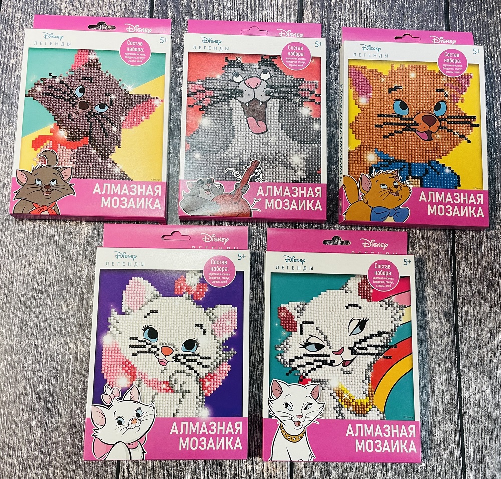 Арт.: «Коты Аристократы» — 70459, 70418, 70419, 70420, 70421; «Мопсы» — 70422, 70423, 70424.