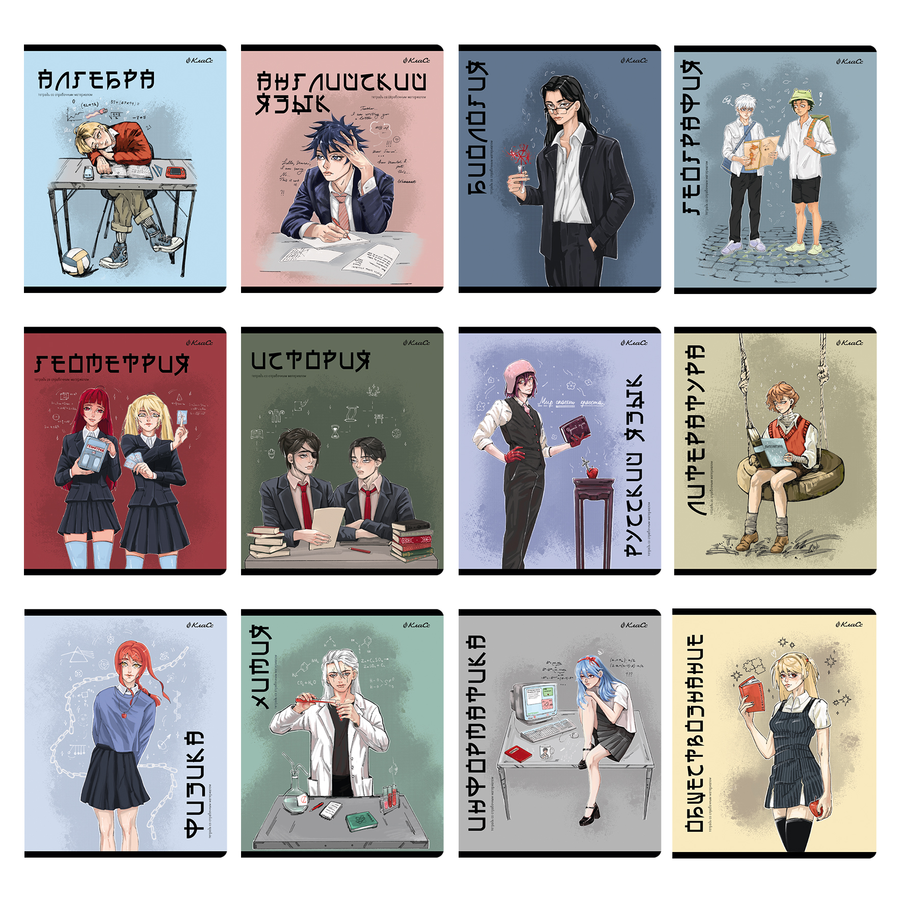 Обложки серии «Анимания» следуют одному из самых креативных трендов года — страсти к digital арту. Двенадцать уникальных авторских рисунков на обложках изображают привычные и жизненные школьные моменты как модное аниме.