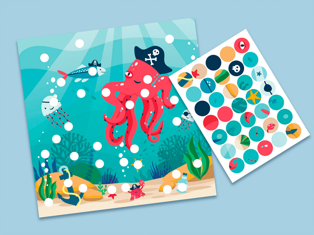 Аппликация с наклейками «Морские пираты» ТМ ФРЕЯ (арт. RSND-002) — это отличная возможность освоить интересную и красочную технику творчества. Выкладывать наклейками изображение морских обитателей особенно понравится любителям пиратской тематики и подводного мира. К слову, данное занятие прекрасно помогает раскрыть творческий потенциал, развить внимание и аккуратность.