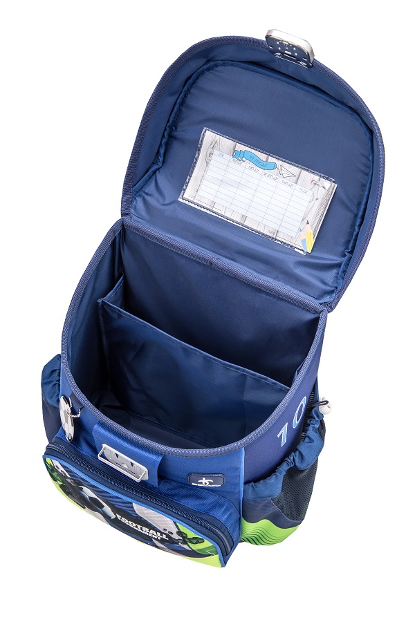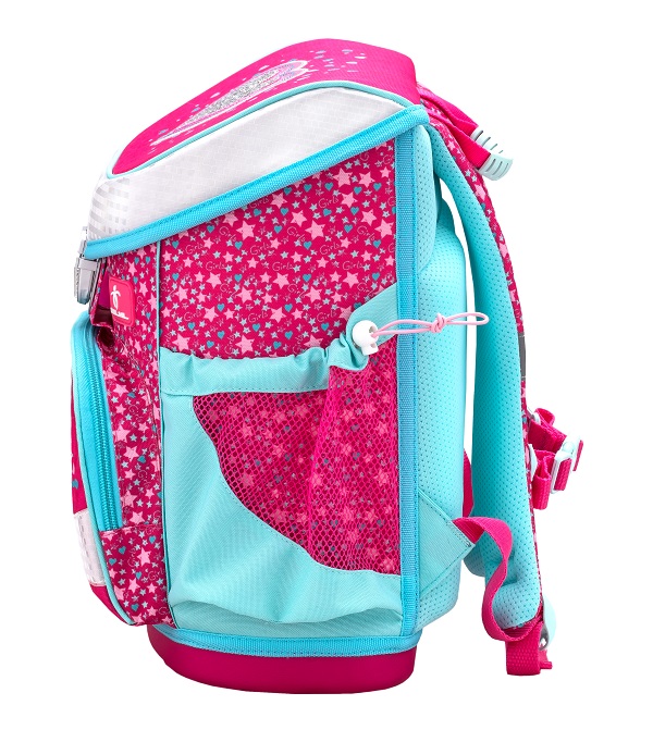 Модель усилена прочными панелями с каждой стороны, нижняя часть сделана таким образом, чтобы предотвратить ранец от заваливания и загрязнений. Внутри ранца два вместительных отделения. Идеально подходит для тетрадей и учебников размера А4. Бутылочка с водой (до 0,7 л) и зонтик легко помещаются в боковые карманы. Эргономичная форма и воздухопроницаемая обивка спинки ранца снижают нагрузку с позвоночника. Амортизирующие и регулируемые бретели и надёжный нагрудный ремень были разработаны специально для маленьких непосед. Имеются ручка для переноски и петелька для подвешивания ранца.