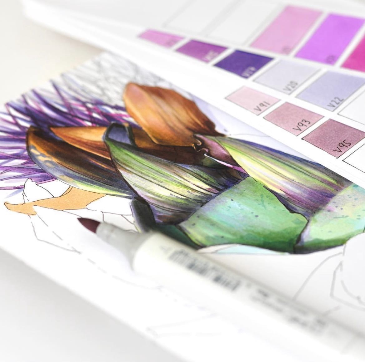 Спиртовые чернила просачиваются через бумагу, поэтому рекомендуем при работе маркерами подкладывать под рабочие развороты скетчбука защитные листы бумаги, вложенные в блокнот.