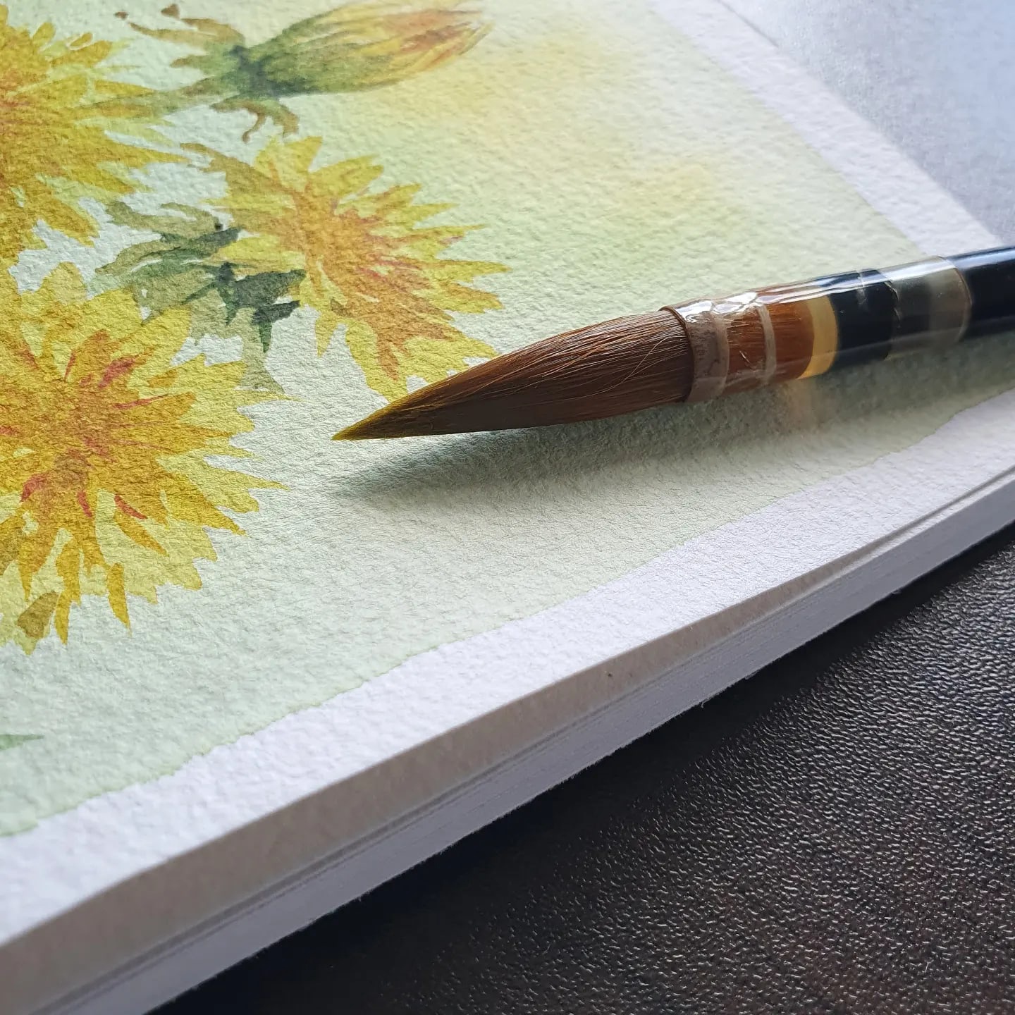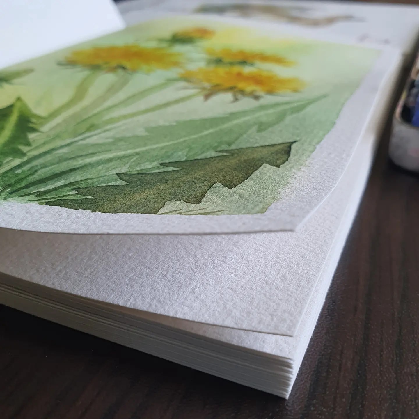 Несмотря на относительно небольшую плотность бумаги, работать в блокноте комфортно, при высыхании листы остаются ровными, работать можно с двух сторон.