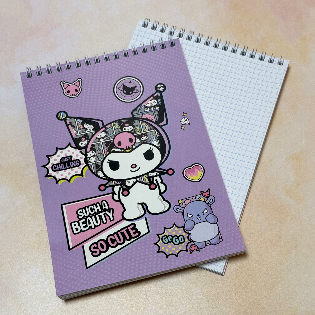 Внутренний блок с разлиновкой в клетку и картонная обложка скреплены с помощью металлического гребня. Высокое качество цветопередачи обеспечивает яркое и чёткое несение изображений. Объём — 60 листов.