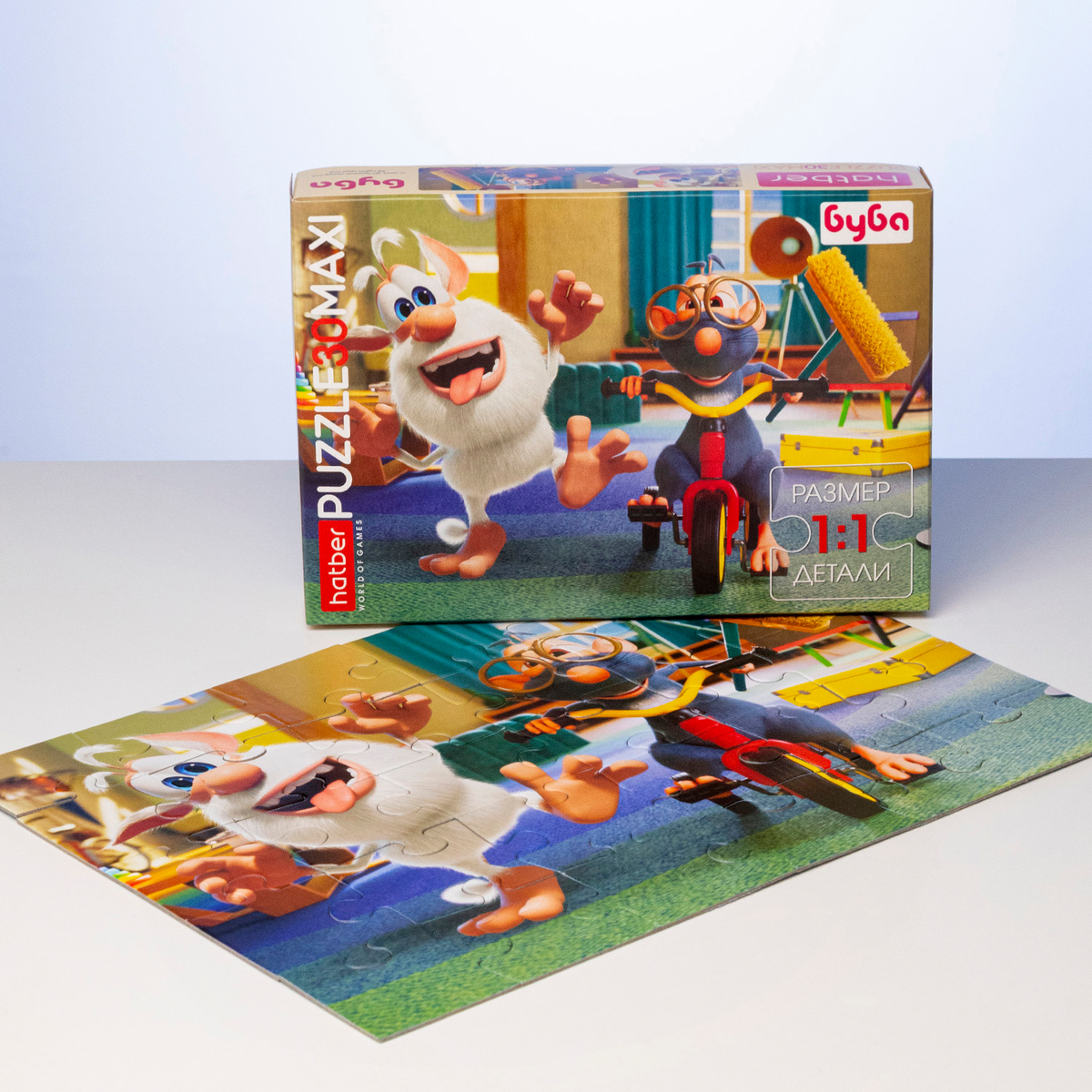 Познакомьтесь с новинкой — яркими пазлами MAXI серии «Буба». Увлекательные сюжеты любимого мультперсонажа теперь представлены в наборах с крупными и удобными для детских рук деталями. Пазлы на 30 элементов позволяют легко собрать сцены с забавным Бубой и его друзьями, погружаясь в атмосферу радости, творчества и весёлых приключений.