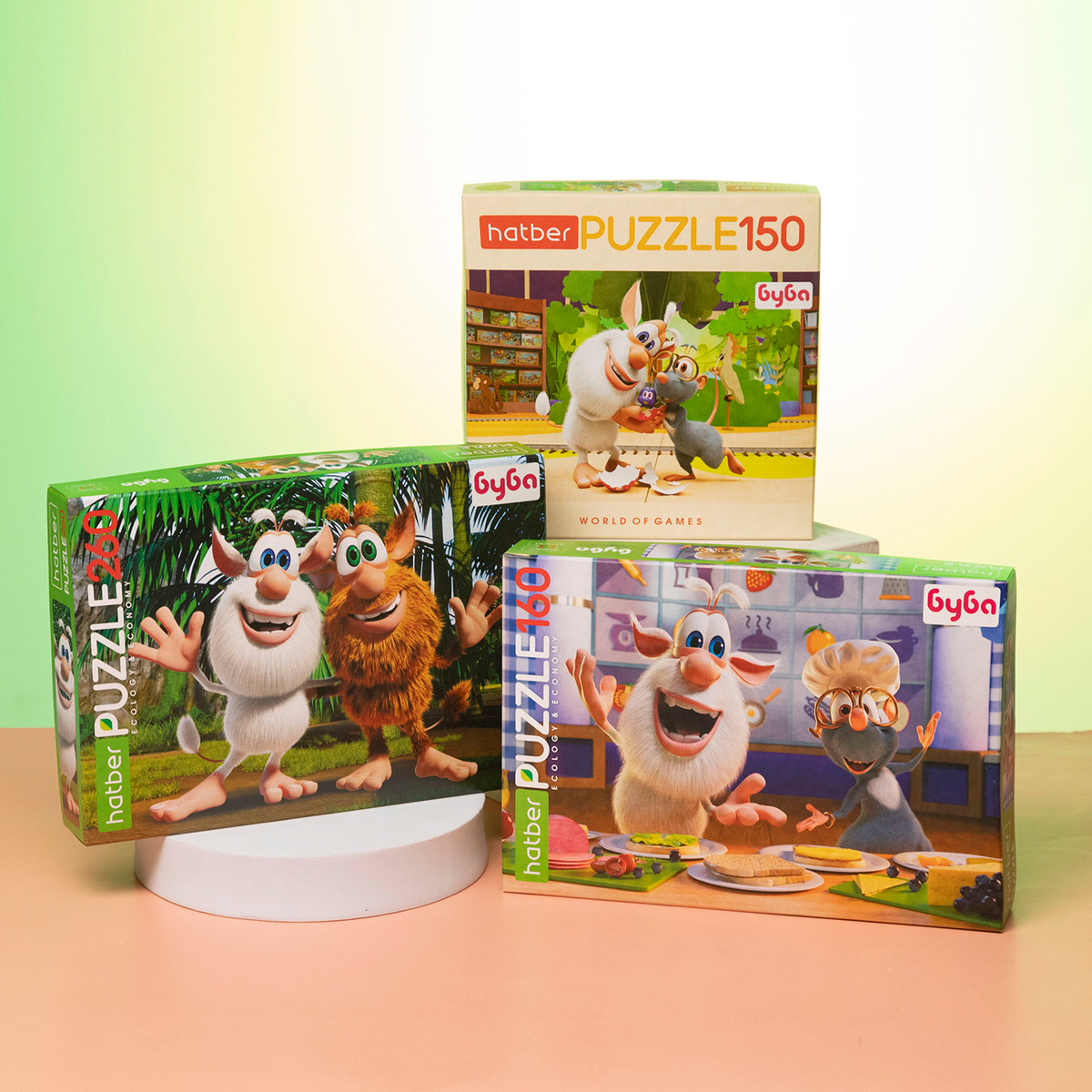 На ярких коробках — весёлый Буба и его друзья. Они попадают в самые разные истории: то в джунгли, то на кухню. Каждый раз — новые приключения, новые улыбки и новые эмоции. Собирая эти пазлы, дети и взрослые вместе проводят время, смеются и радуются, ведь каждый кусочек складывается в картину, полную доброты и озорства. Пазлы яркие, красочные и лёгкие в сборке. Они точно понравятся детям и станут отличным поводом для семейного вечера.