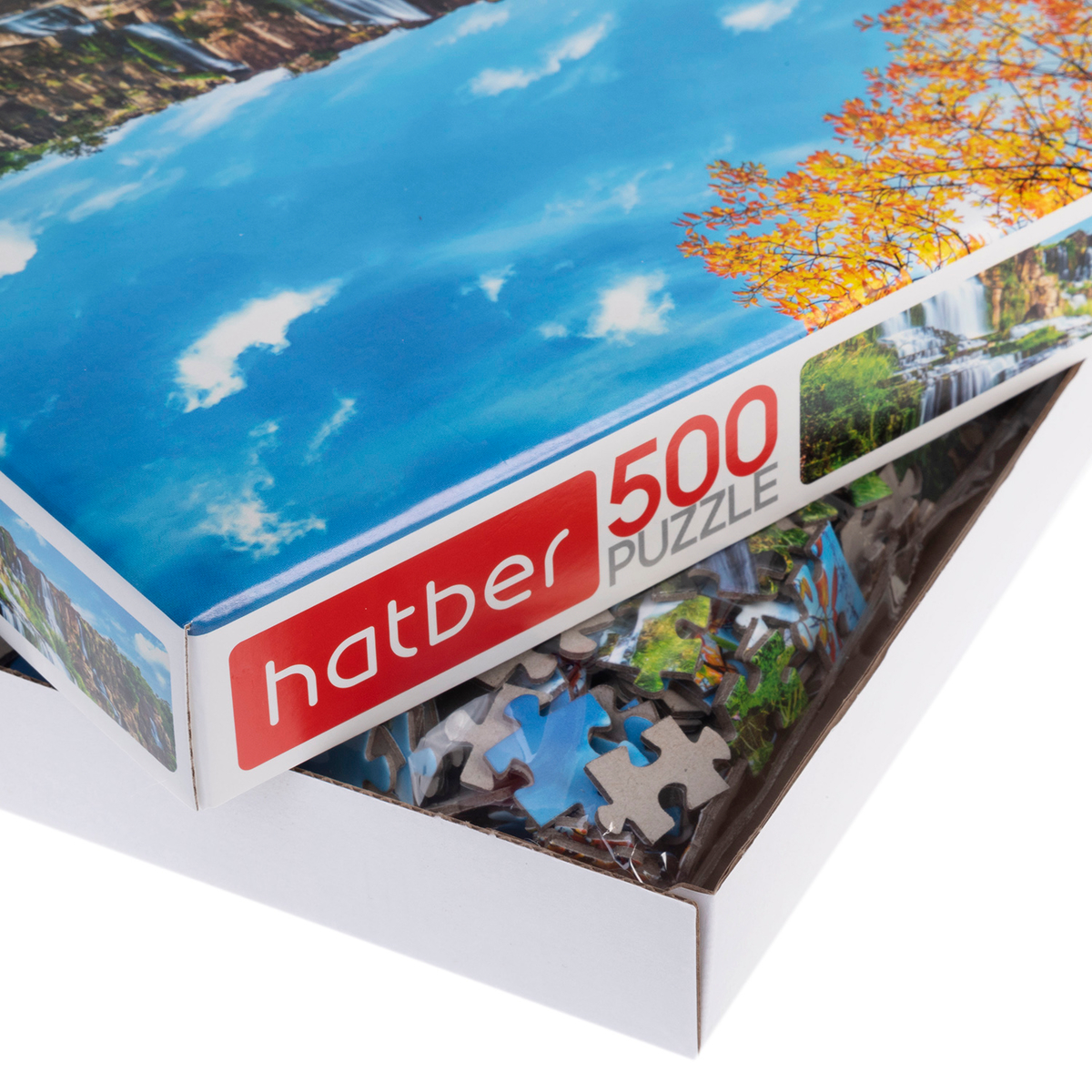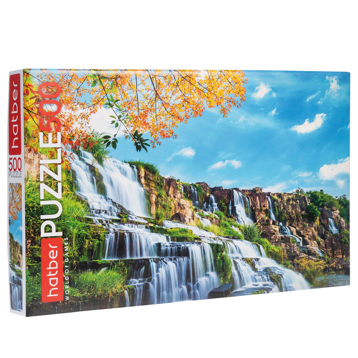 Восхитительный снимок горного водопада на пазле в 500 деталей «Магия воды» с каскадами кристально-чистых вод, яркой сочной зеленью и бегущих по бездонно-синему небу облаков по истине очаровывает с первого взгляда, радует глаз и дарит прекрасные минуты наслаждения.
