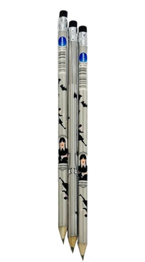Для быстрой корректировки у карандашей есть ластик из синтетического каучука, расположенный на верхней части. Карандаши представлены в заточенном виде. Новинки комплектуются в наборах из 3 штук, схожих по дизайну. Упаковка — ПВХ-пакет с европодвесом.