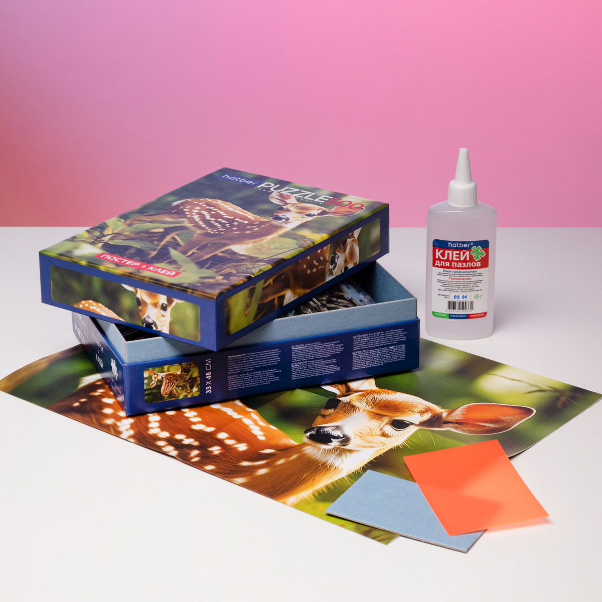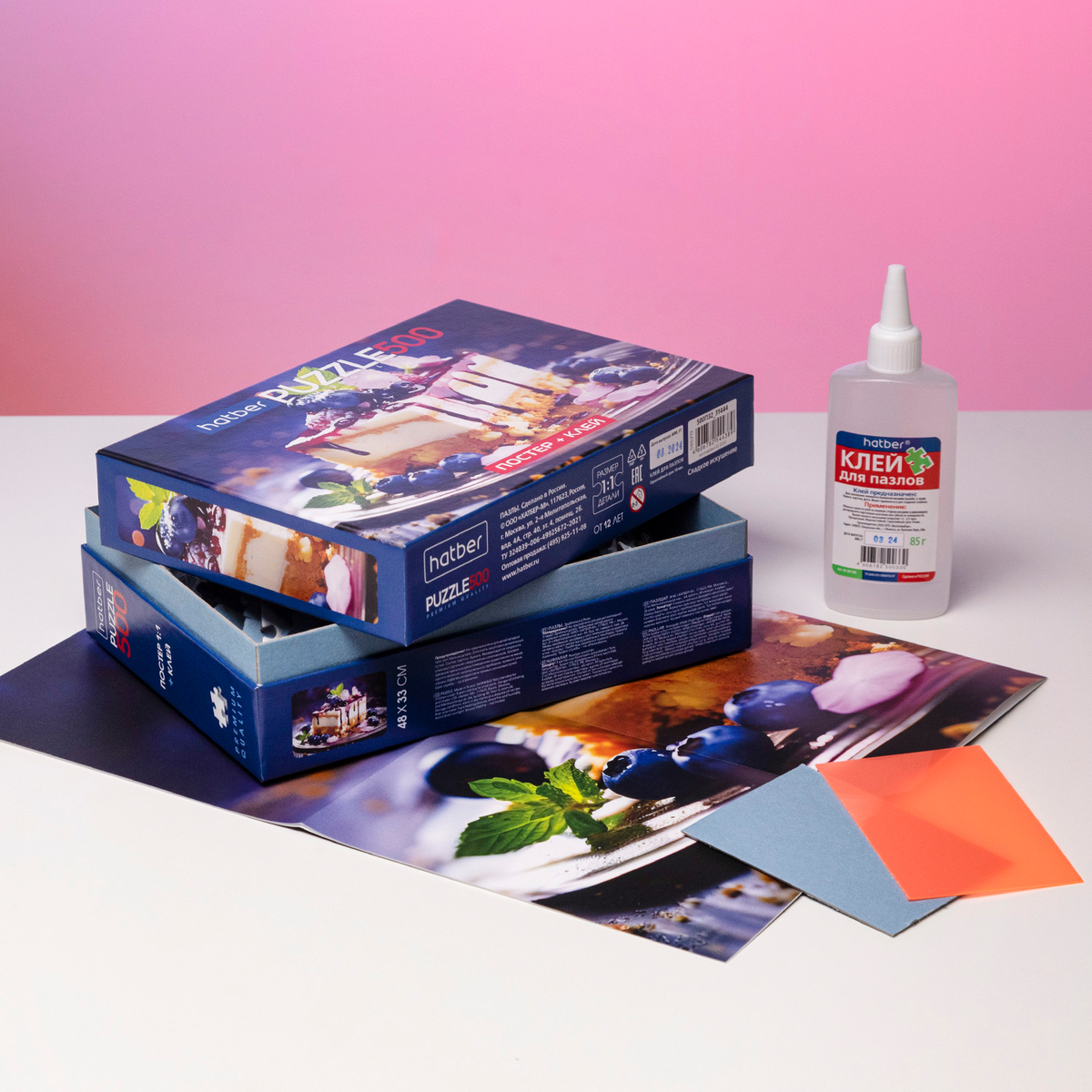 Комбонаборы упакованы в стильную прочную коробку, включают в себя пазл на 500 элементов премиум-коллекции, специальный клей для пазлов объёмом 85 г, полноразмерный цветной постер и шпатель для распределения клея.