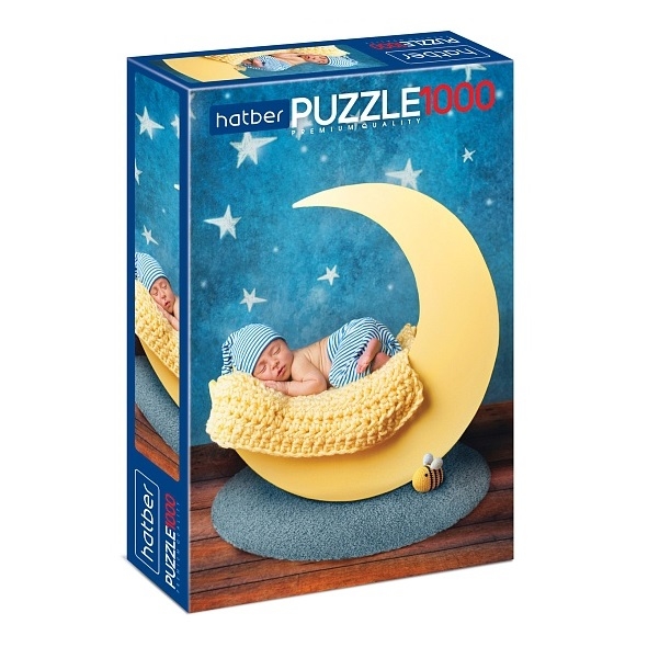 Уютная новинка в стиле NewBorn premium-пазла на 1000 элементов «Детские сны» представляет собой милейшее фото спящего младенца. Нежно-жёлтый полумесяц и тёплый вязаный пледик в тон служат малышу кроваткой. Главный герой в одеянии из полосатой пижамки и колпачка напоминает маленького Питер Пена. А фон ночного звёздного неба с мерцающими звёздами добавляют сказочной атмосферы. Сборка этого пазла, несомненно, подарит вам умиротворение и спокойствие.