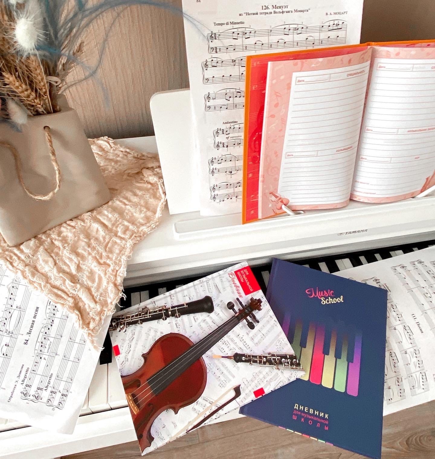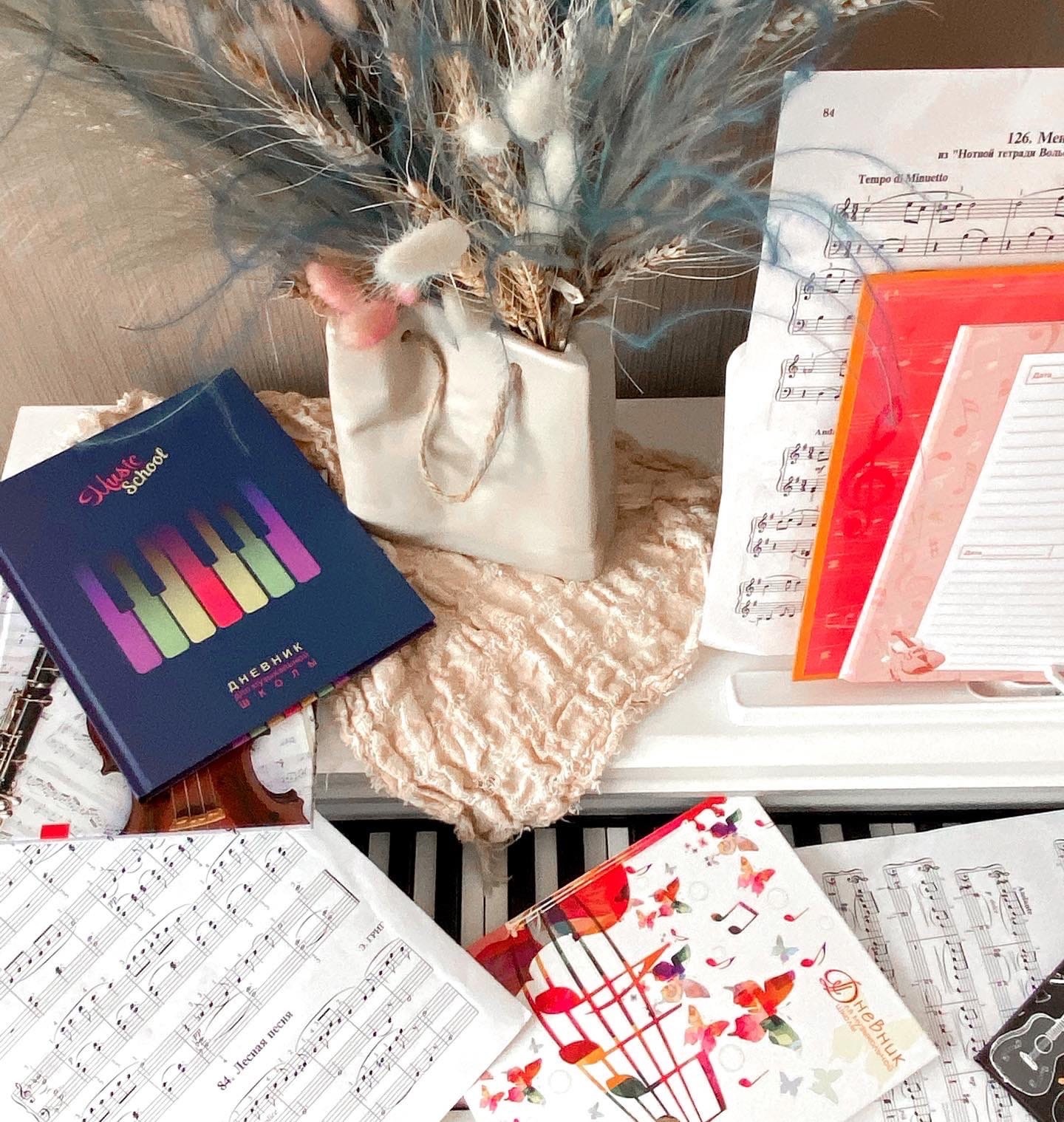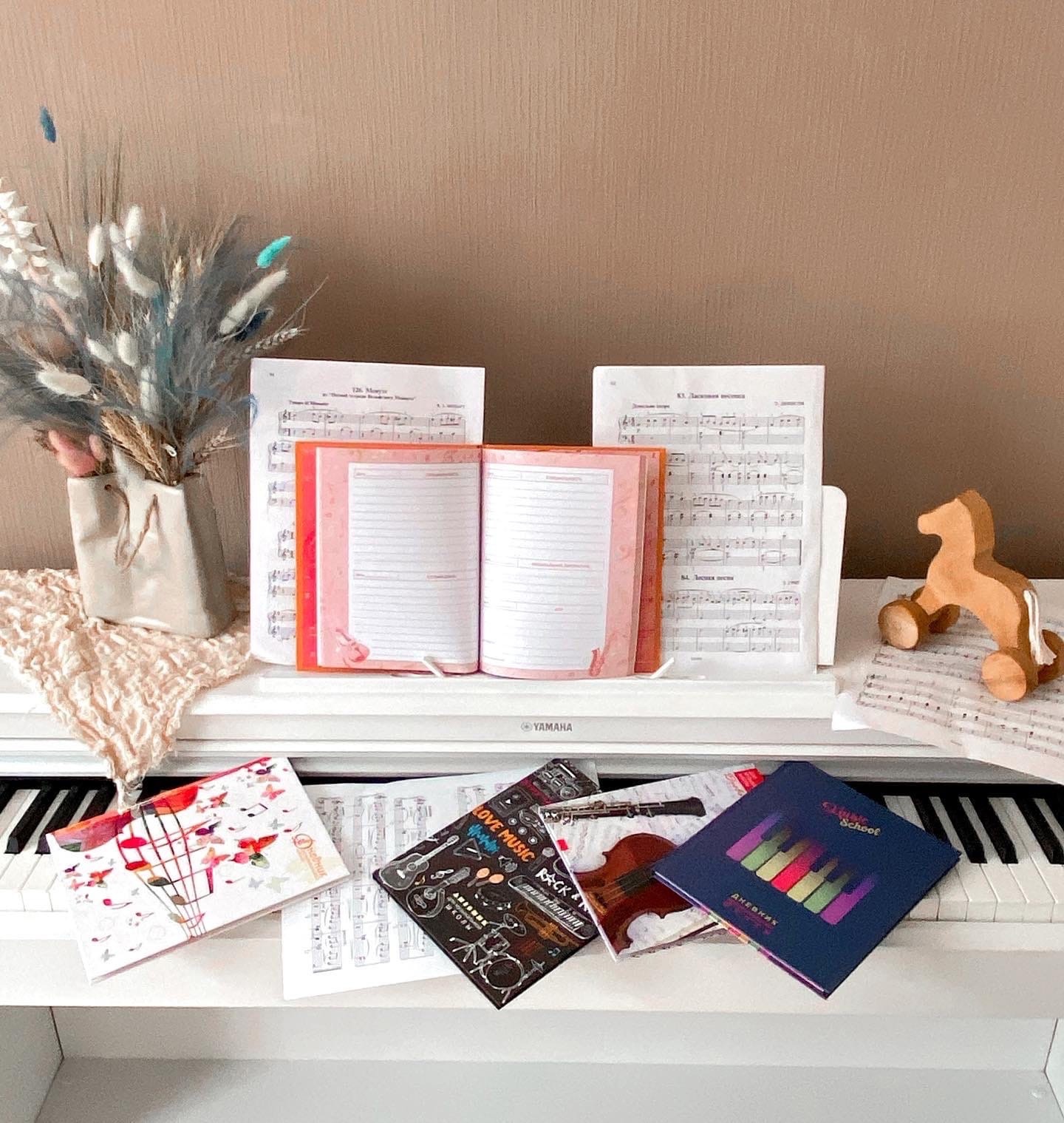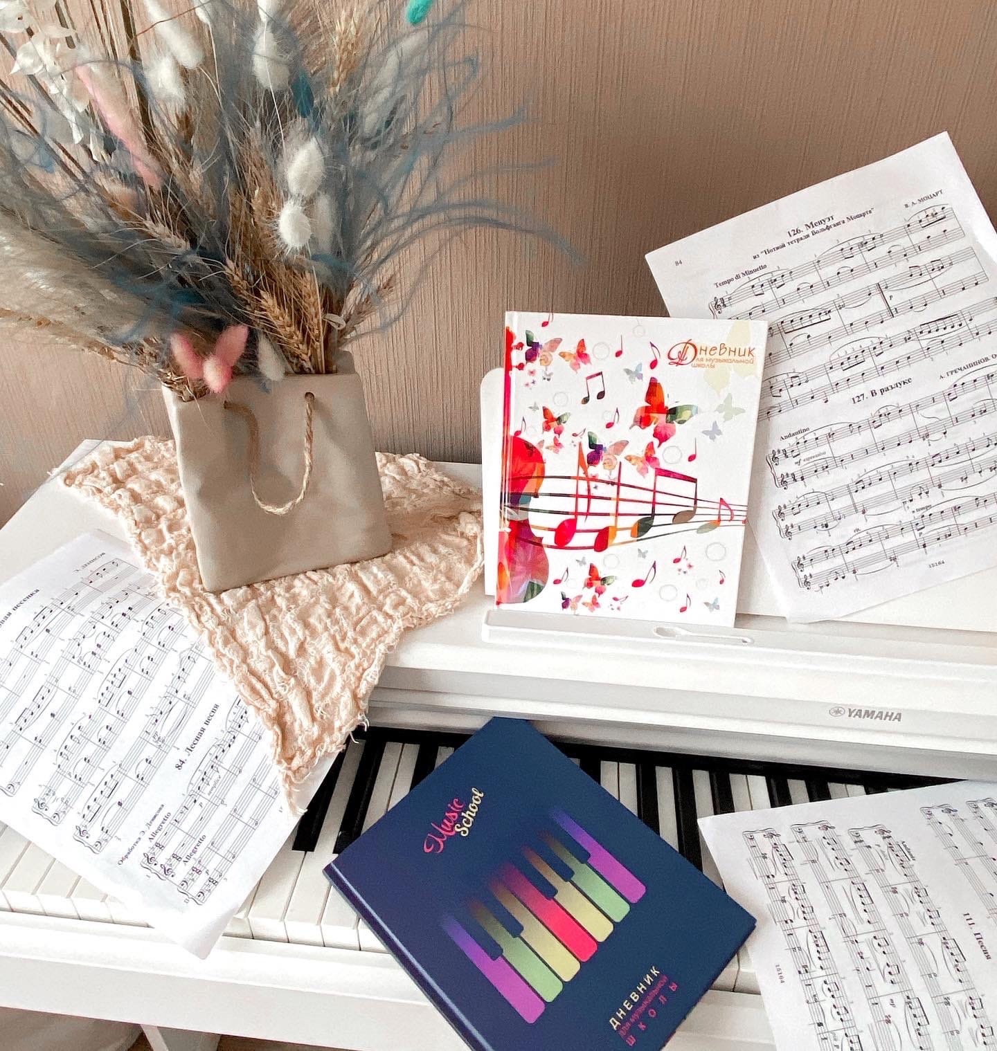 Для юных музыкантов, которые знакомы с музыкой не понаслышке, новые дизайны дневников для музыкальной школы. Твёрдый переплёт, 48 листов, страницы из белой бумаги с розовой печатью.