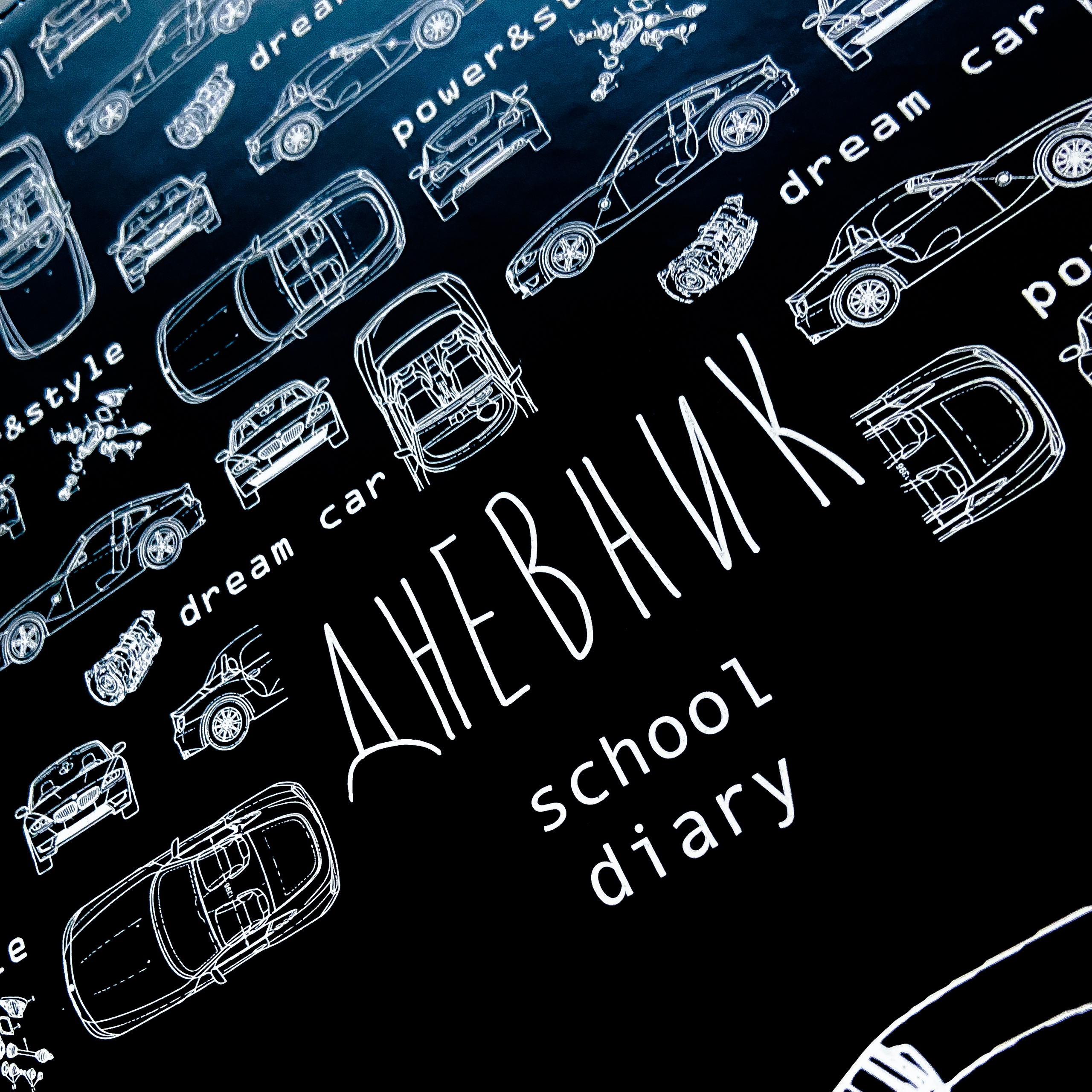 Графичная концепция на обложке дневника «Blueprint. Автомобиль» — чертежи автомобиля, выполненные на чёрном фоне. Подойдёт для использования в любых классах школы: от начальных до старших. Гибкая обложка, изготовленная из искусственной кожи, позволит сохранить аккуратный вид дневника надолго.