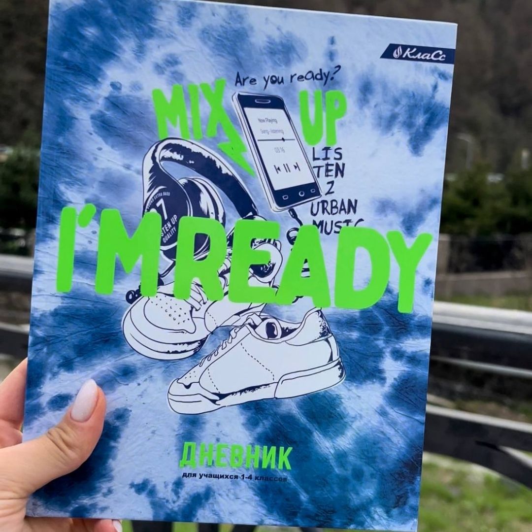 Дневник «Я готов» стильно рассказывает о том, как нужно правильно идти в школу. Графичный коллаж знакомых дорожных аксессуаров, драйвовый фон и кислотно-зеленая типографика соединяются в позитивную атмосферу, которую узнает любой школьник!