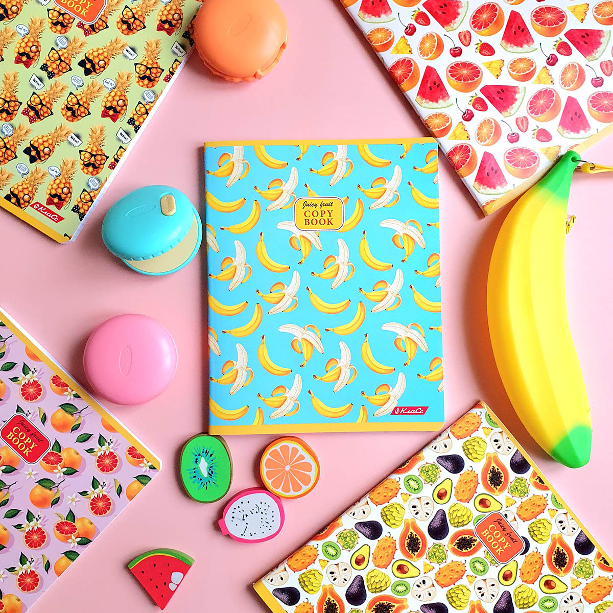 Пусть зимой витамины окружают повсюду! Тетради «Фруктомания» поднимут настроение яркими фруктовыми красками на своих обложках. Цитрусовые и экзотические принты — для бодрости и энергии!