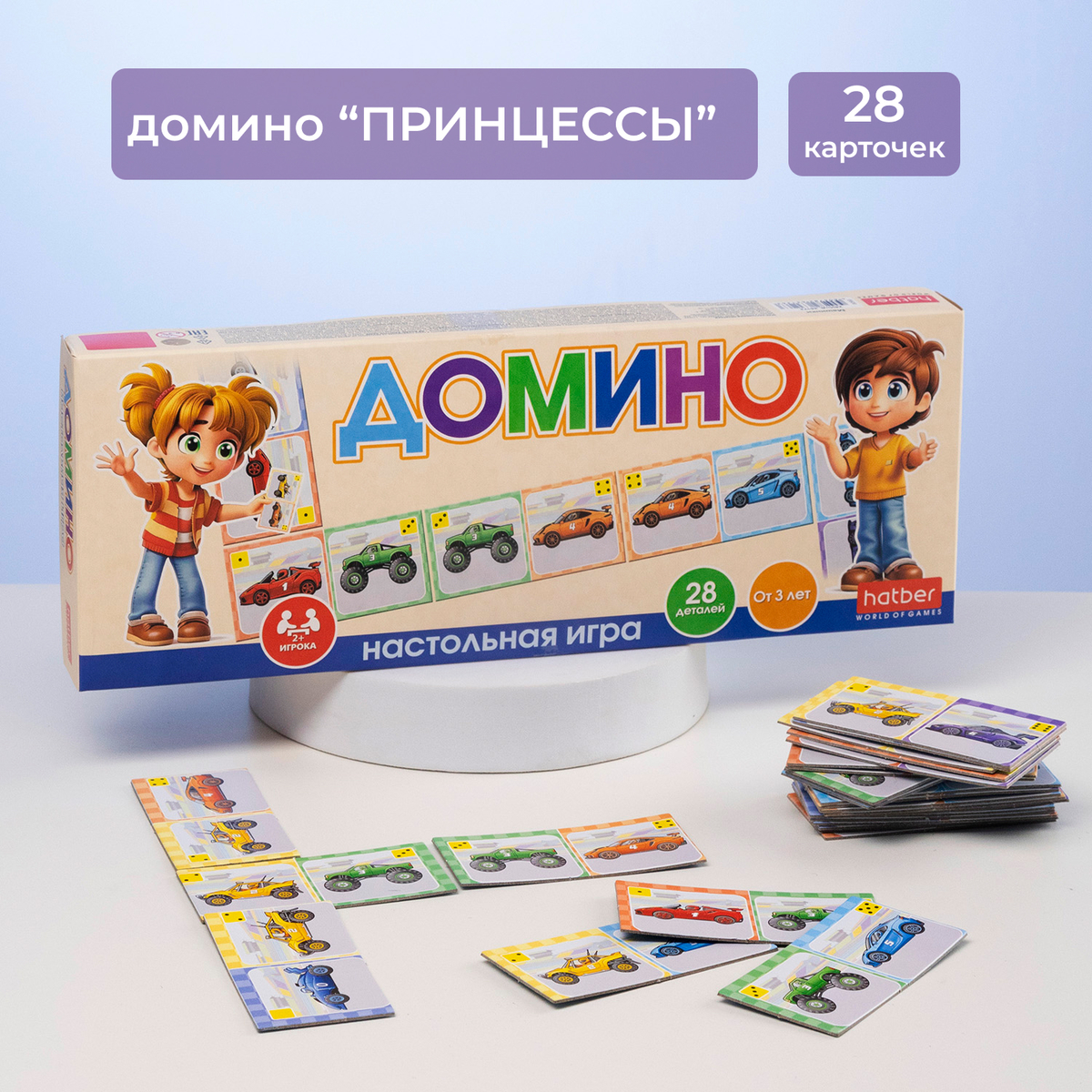 Новые наборы детского домино с сюжетами «Машинки» и «Принцессы» ориентированные на детей от 3 лет. Это понятный, лёгкий формат первой настольной игры, который помогает развивать внимание, память, умение сравнивать и следовать простым правилам.