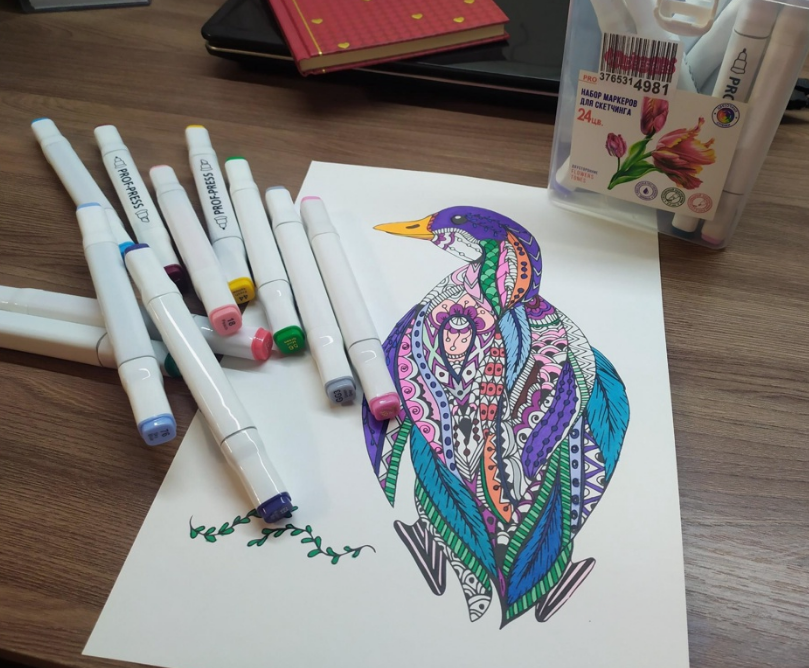 Надеемся, что палитра наборов от 6 до 120 оттенков двусторонних маркеров для скетчинга от «Проф-Пресс» раскроет ещё больше талантов наших покупателей. В фото- и видеообзорах представлены работы, выполненные маркерами от «Проф-Пресс».