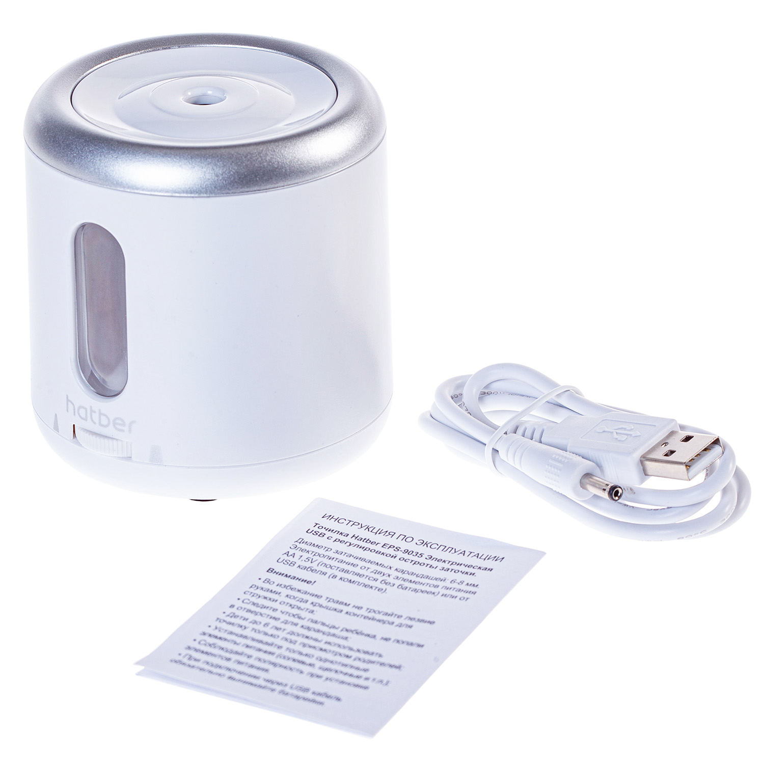 В комплекте: точилка, USB-кабель, инструкция.