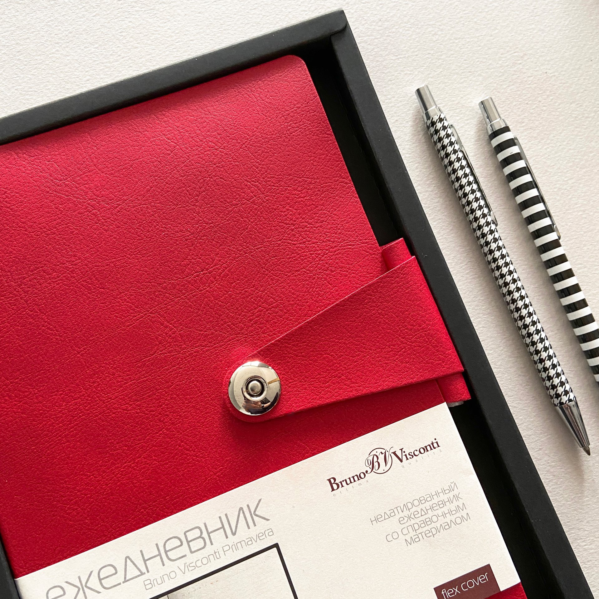 Эффектный ежедневник формата А5 из коллекции Primavera насыщенного красного цвета. Яркий аксессуар в строгом деловом стиле поможет организовать ваш день и напряжённый рабочий график.