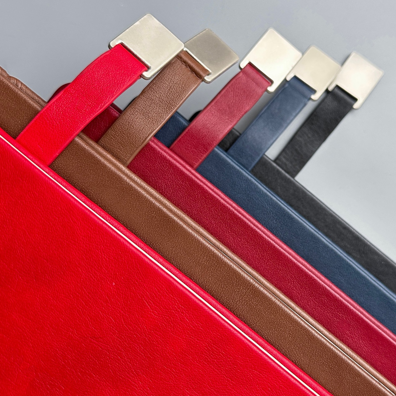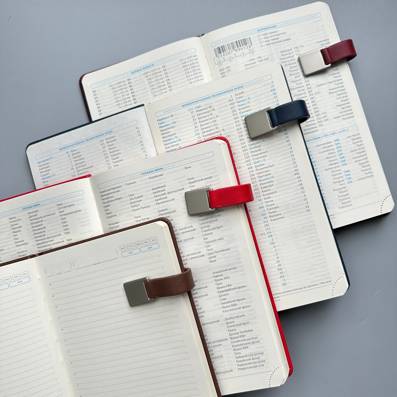 А5 (156 х 230 мм), цвета обложки: красный, бордовый, коричневый, тёмно-синий, чёрный.