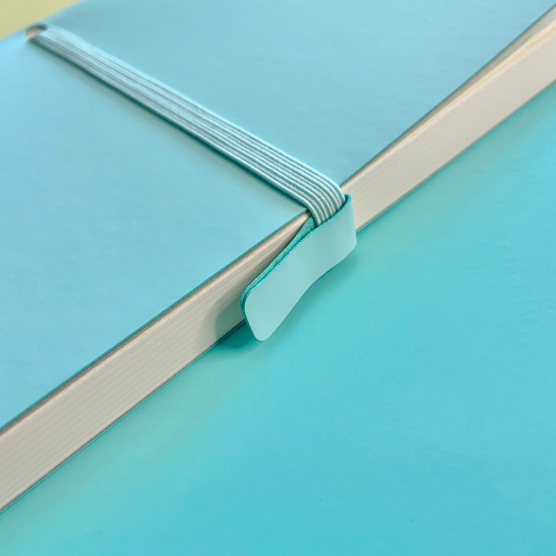 Ежедневник недатированный, выполнен в мятном цвете. Отличительные особенности — гибкая обложка с покрытием soft touch, горизонтальная широкая резинка с бегунком, круглое отверстие для крепления резинки. Блок в точку выполнен из бежевой бумаги плотностью 70 г/кв. м, внутри месячный планер.
