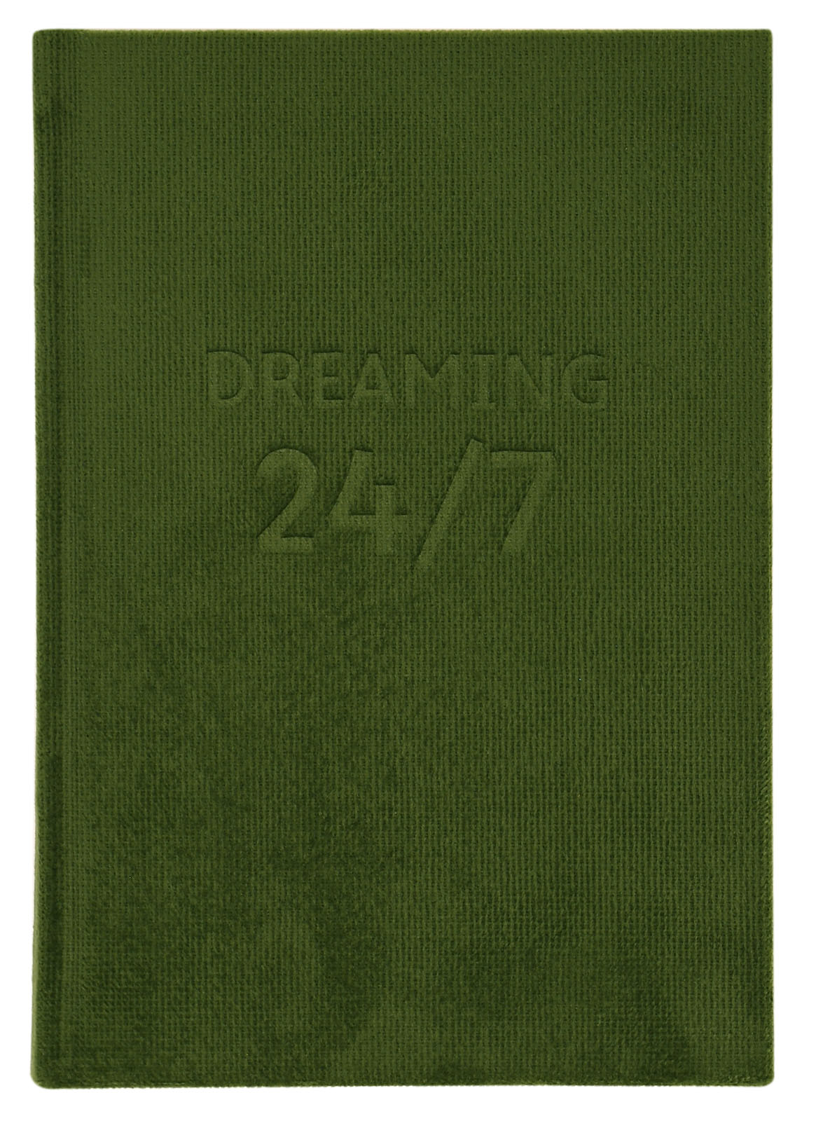 Ежедневники DREAMY представлены с тканью под вельвет с мотивационной надписью Dreaming 24/7, выполненной блинтовым тиснением. Изюминкой ежедневника является контрастный цветной срез!