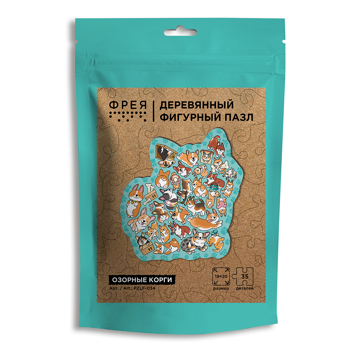 - «Озорные корги» (арт. PZLF-034) — в форме щенка, коллаж с веселыми собачками корги.