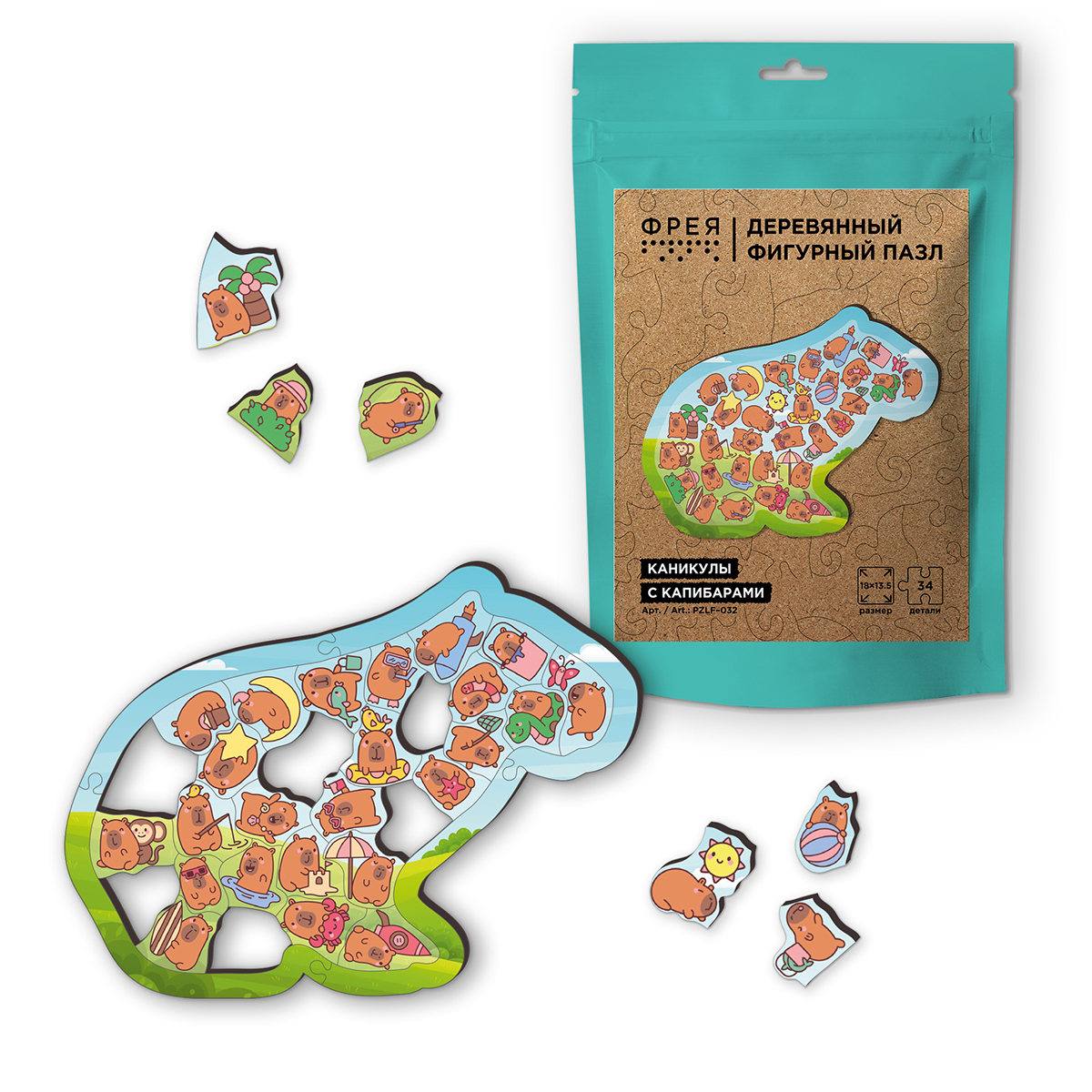 - «Каникулы с капибарами» (арт. PZLF-032) — в форме капибары, коллаж с отдыхающими капибарами.