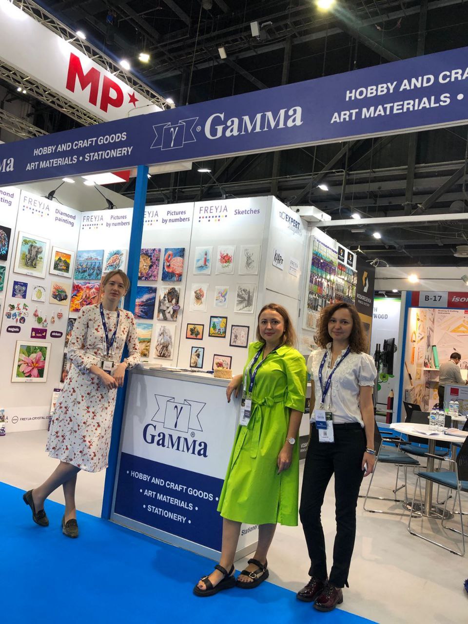 Стенд фирмы «Гамма» («Гамма ТД») окружен вниманием, ведь мы демонстрируем более десятка своих российских брендов. Это «Лео», VISTA-ARTISTA, «ВКФ», EXPERT COMPLETE, SVETOCH, «Фрея», «Поделкин», REZARK, Miadolla, «Эврикус» и др.