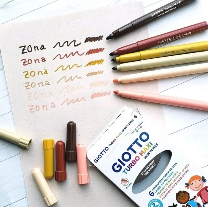 Бренд Giotto рассказывал о важности коричневого цвета в карандашах Stilnovo Skin Tones. Фломастеры Giotto Turbo Maxi Skin Tones не исключение.
