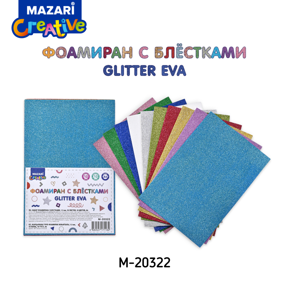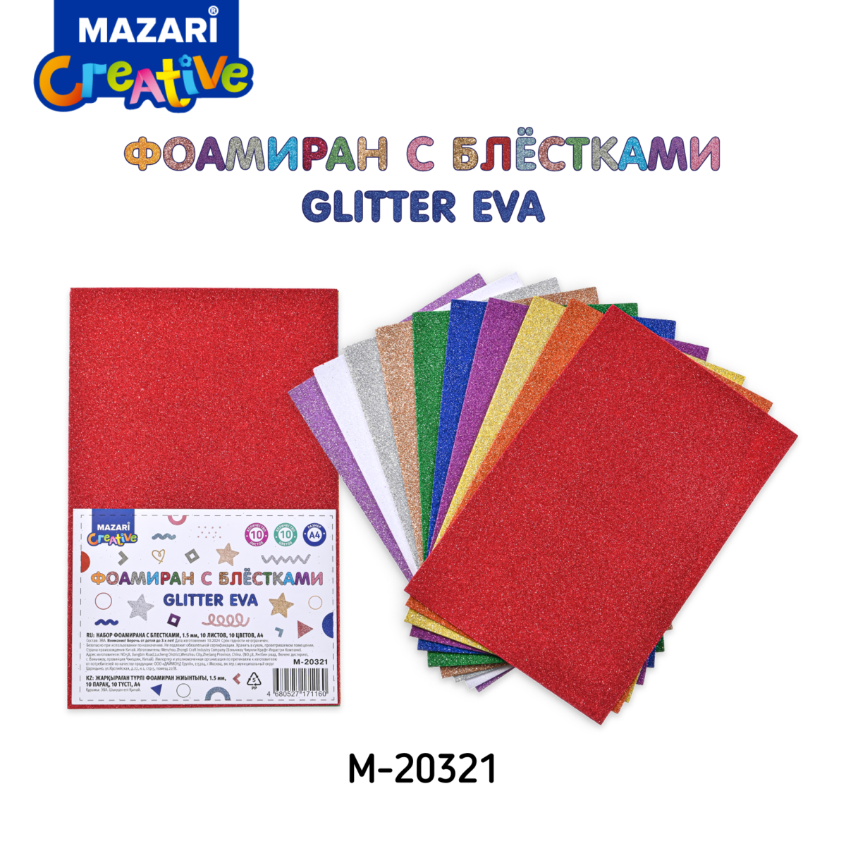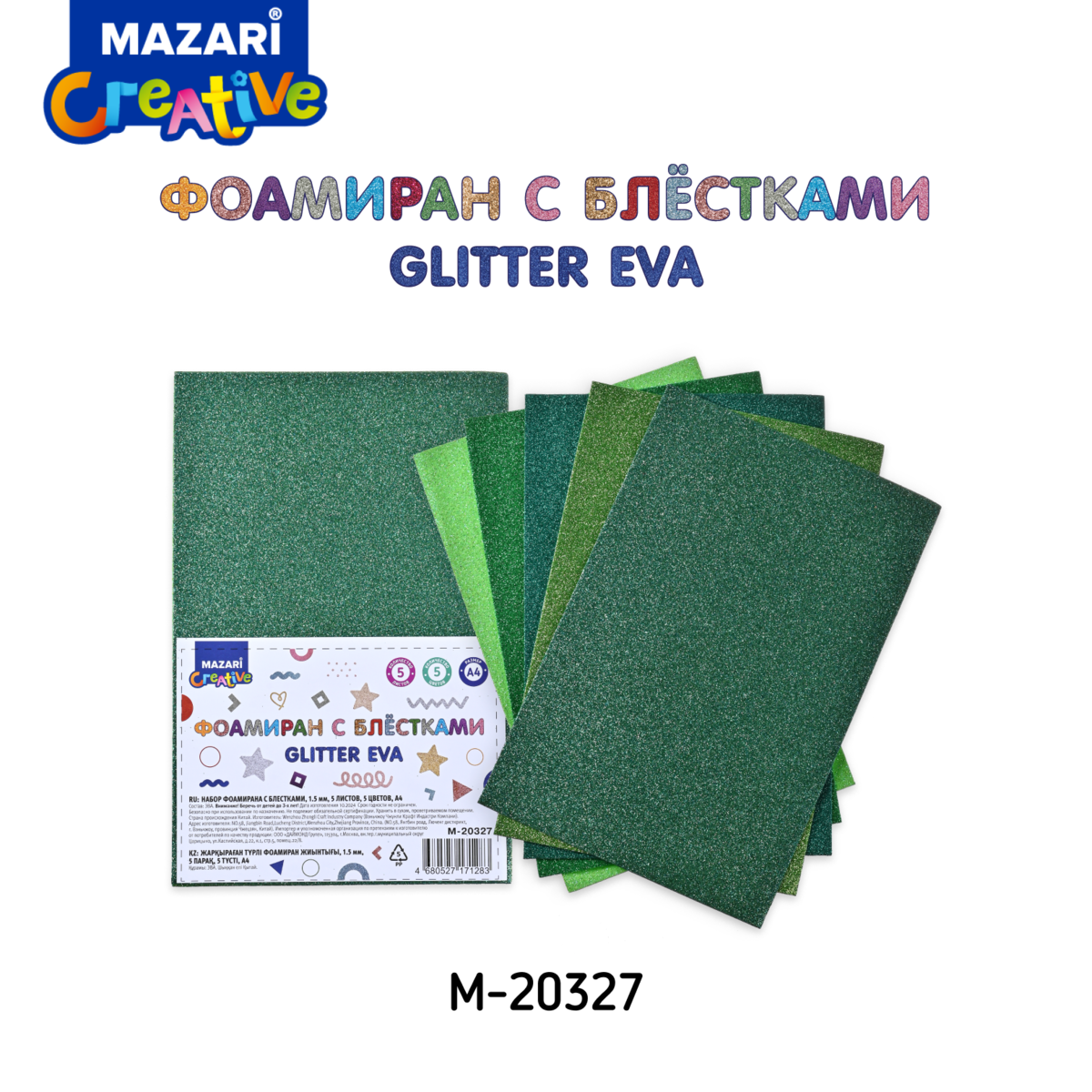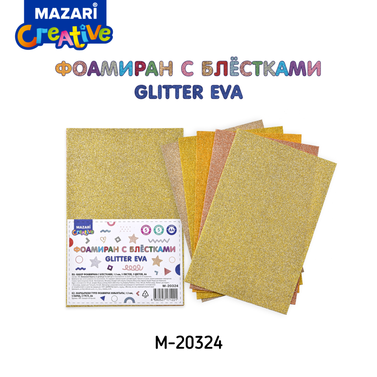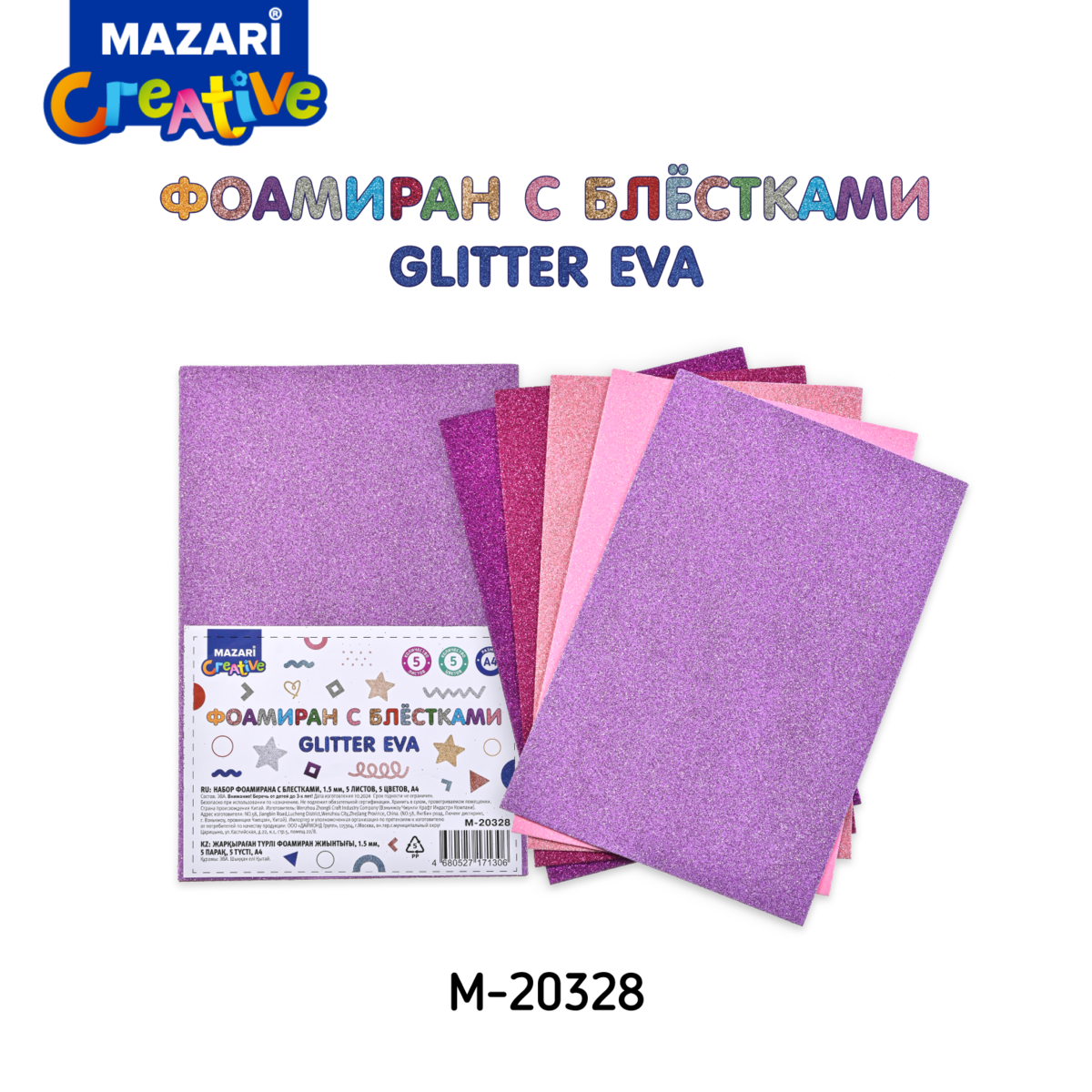 Ассортимент Mazari пополнился 15 артикулами наборов разноцветного глиттерного фоамирана.