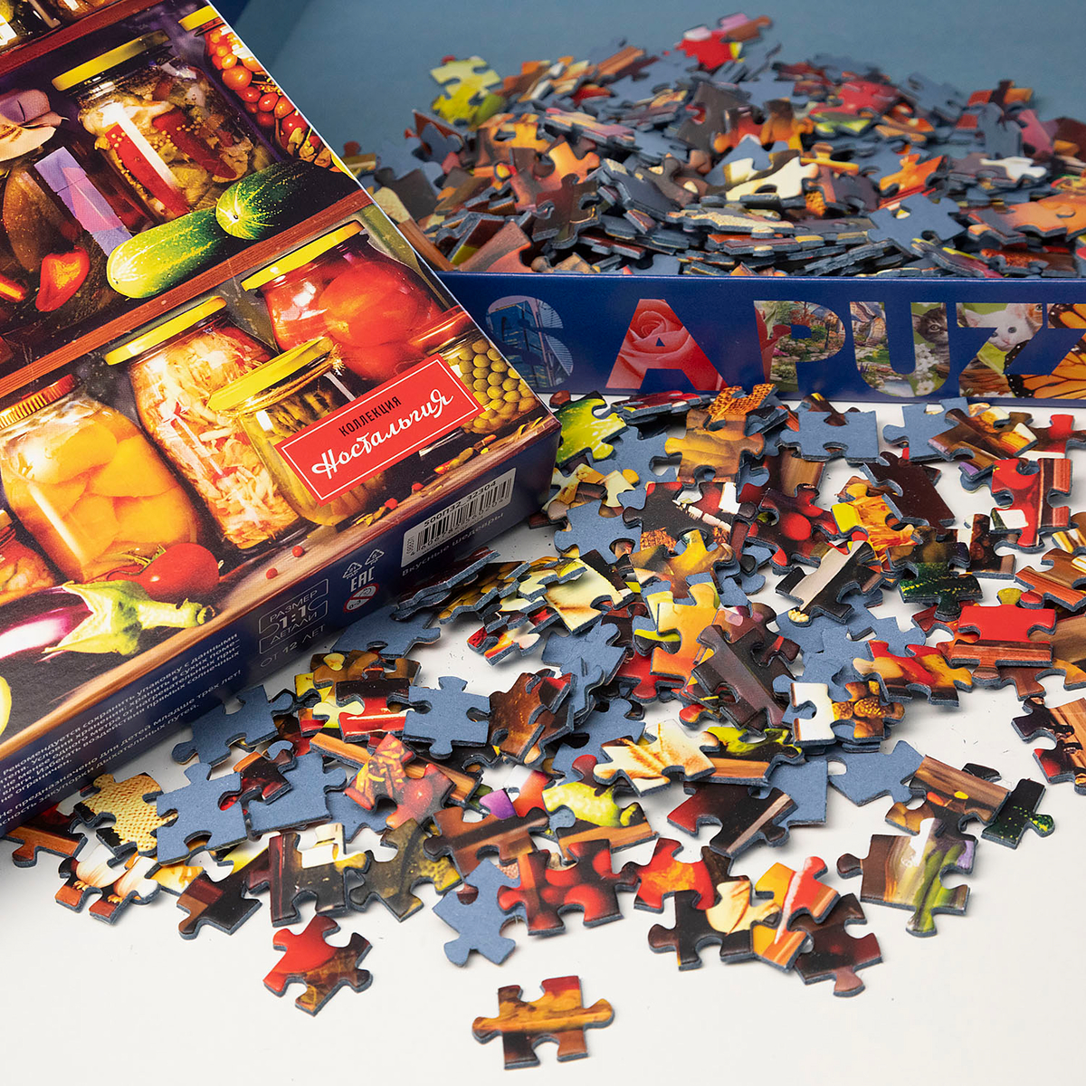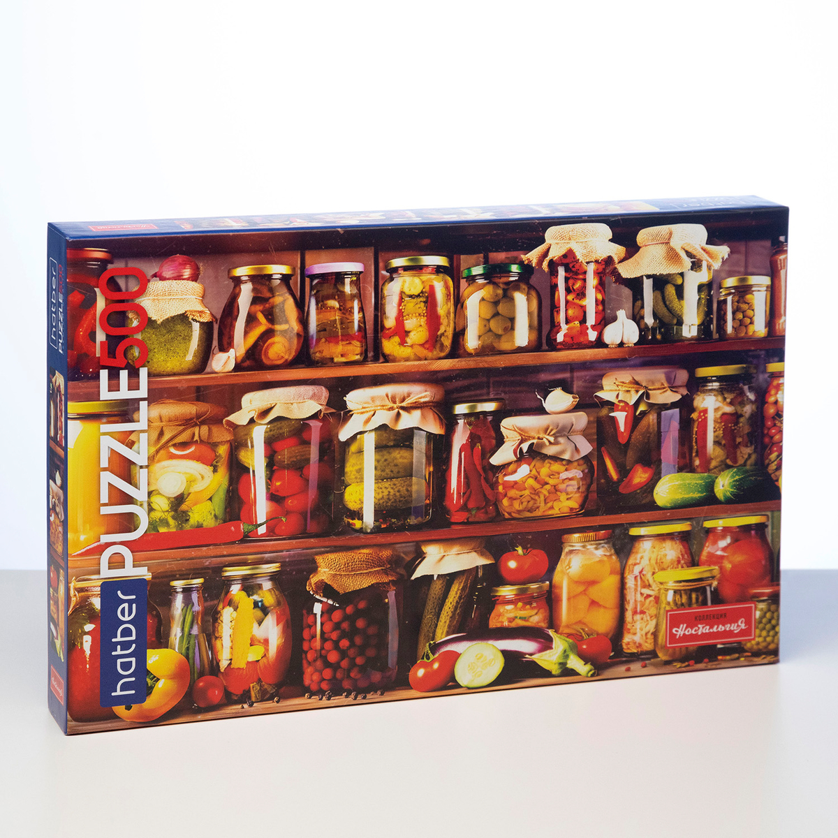 Второй пазл «Вкусные шедевры» — это аппетитные закатки, аккуратно расставленные на полках: банки с душистым вареньем, хрустящими соленьями и грибочками, ароматными компотами. Этот пазл создаёт атмосферу домашнего уюта и тепла. Каждый элемент наполнен сочными цветами и текстурами, которые буквально заставляют слюнки течь!