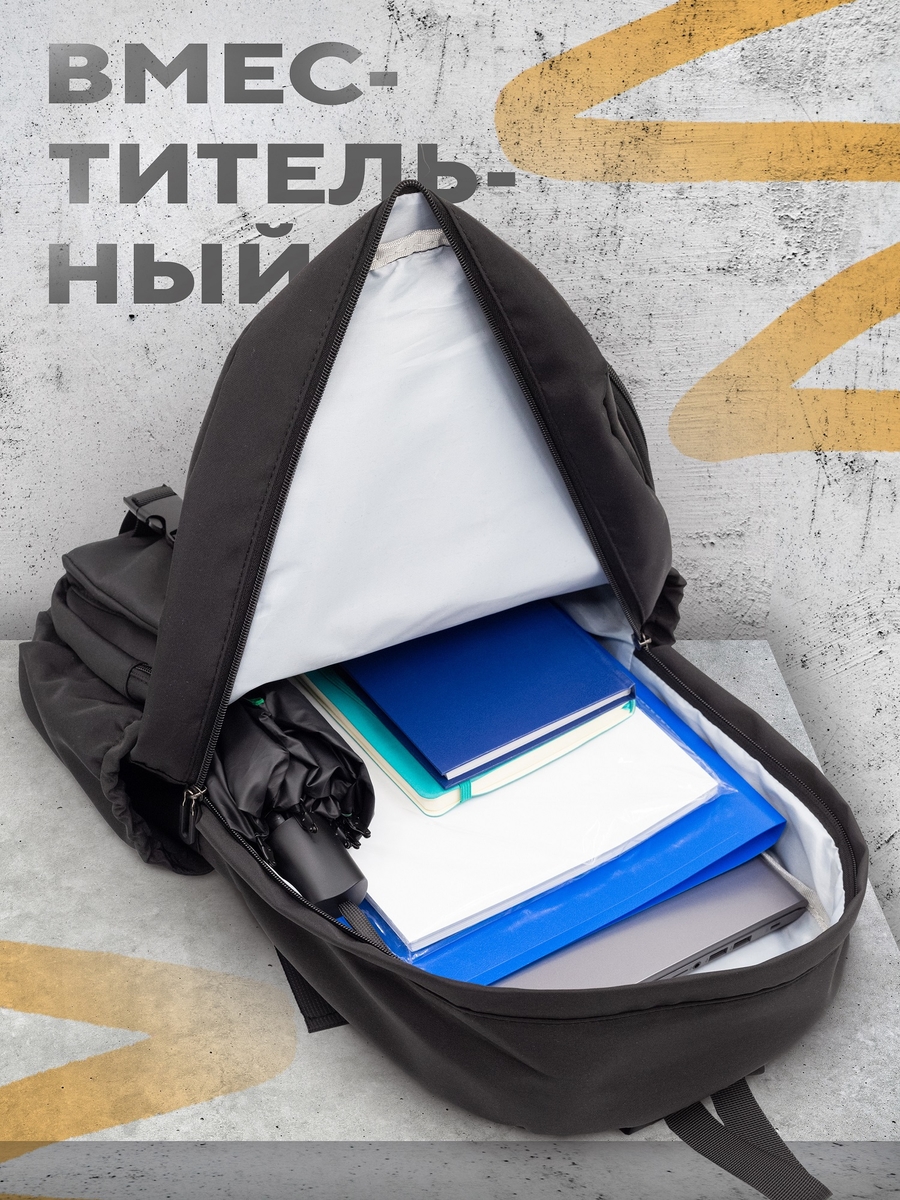- Вместительное большое отделение с карманом для ноутбука.