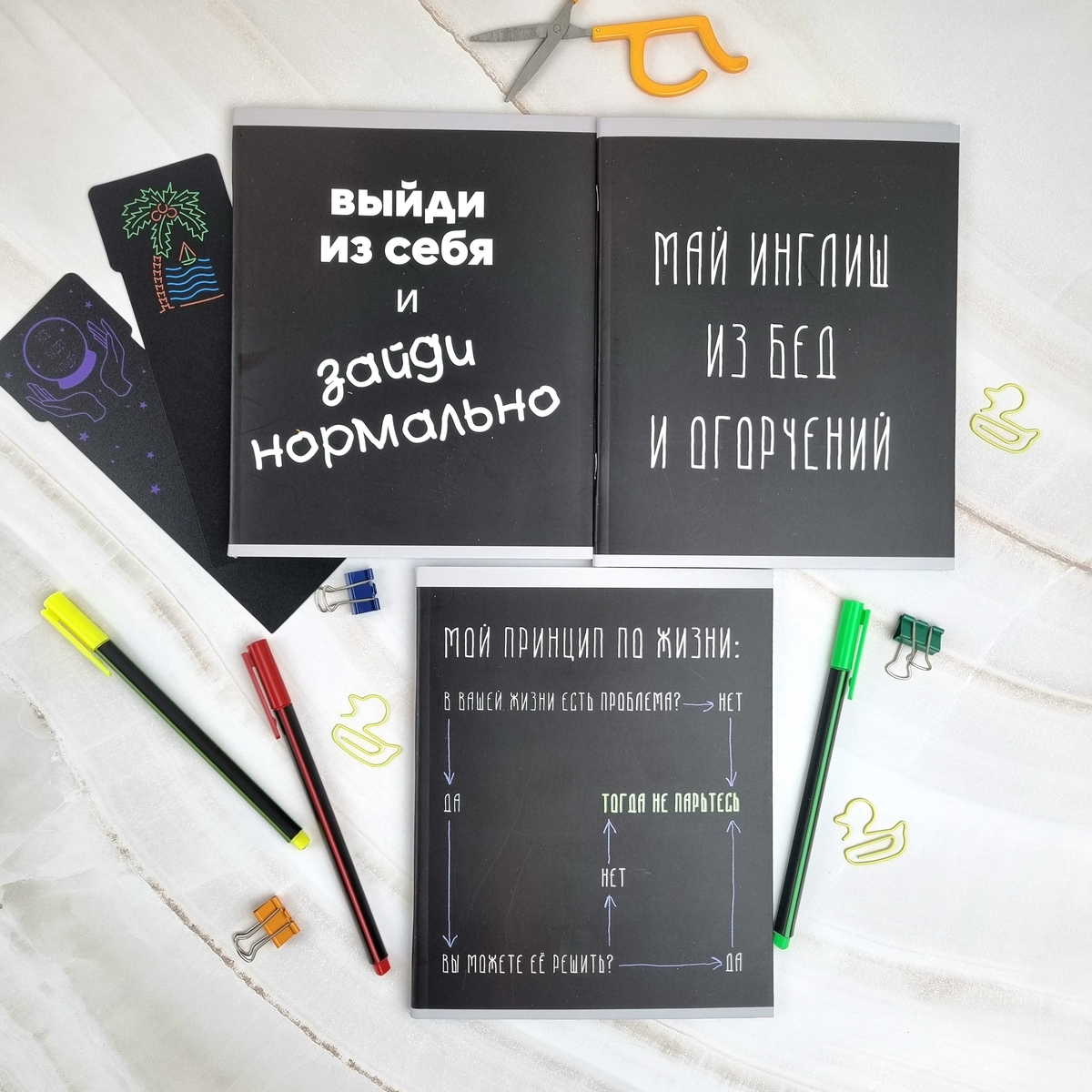 Неординарный дизайн обложек с прикольной надписью — поднимет настроение и выделит тебя из толпы! Тетрадь А5 48 листов на скрепке — оптимальный объём и удобный формат для заметок, идей и важных задач. Качественная бумага и печать — пиши с удовольствием, не боясь, что чернила проступят на обратную сторону.