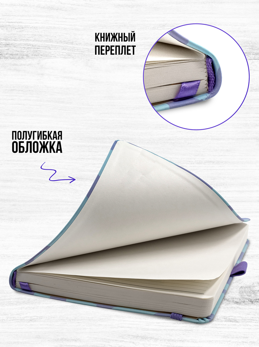 - Закладка-ляссе и резинка-фиксатор в цвет обложки.