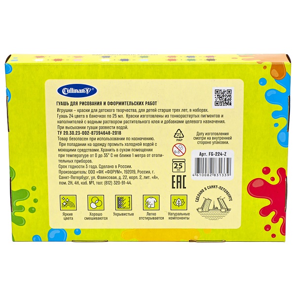 Гуашь Cullinan "Зверята", арт. FG-224-Z в 25 мл