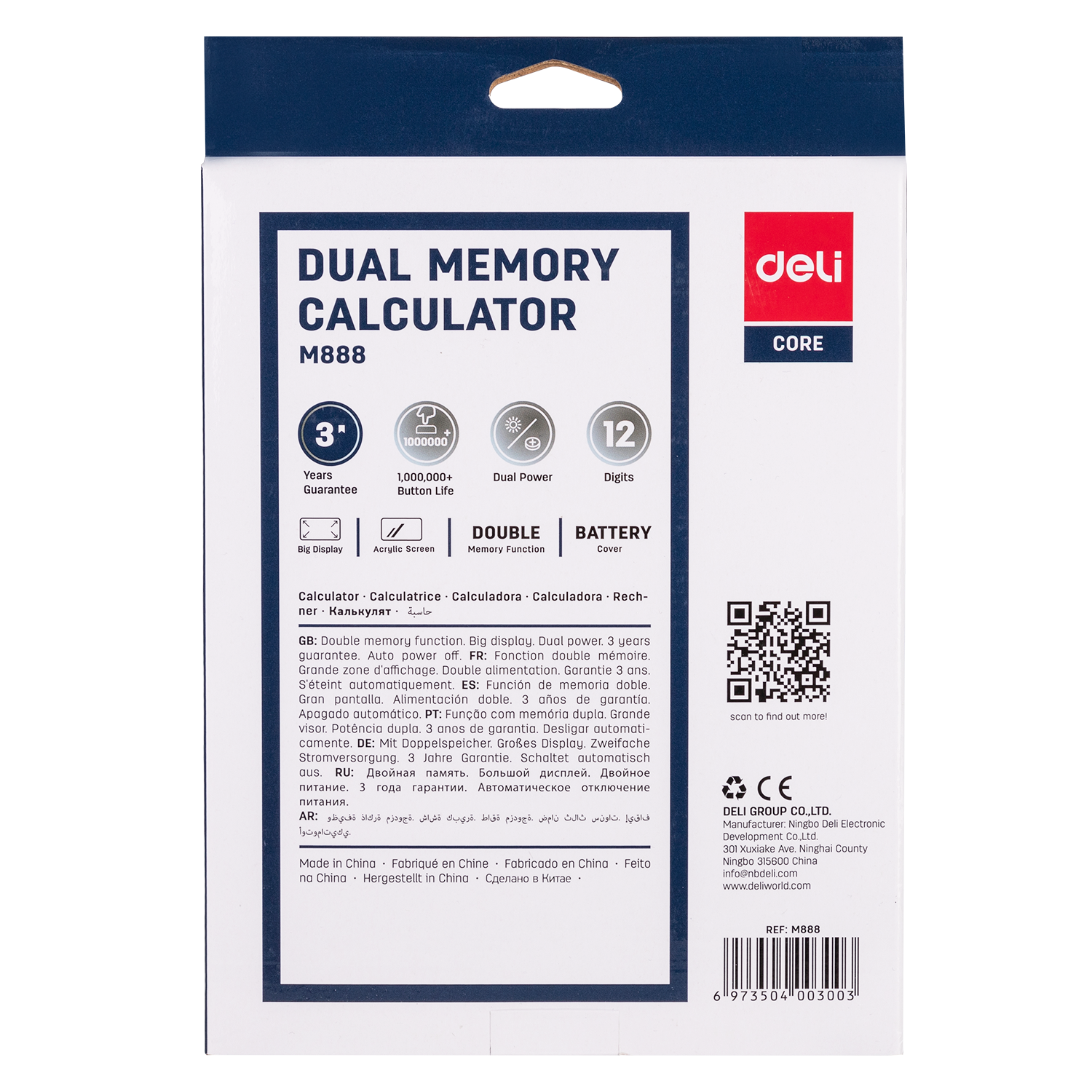 Компания Deli представляет новый настольный калькулятор EM888. Главная отличительная особенность нашего калькулятора — высочайшее качество по уникальной цене. Предлагаем ознакомиться с остальными, не менее важными свойствами.