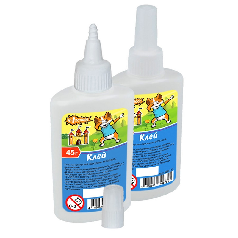 Синтетический канцелярский клей № 1 School — морозостойкий, прозрачный, абсолютно безопасный клей высокого качества, предназначенный для офисных канцелярских работ по бумаге и картону, а также для приклеивания фотографий.