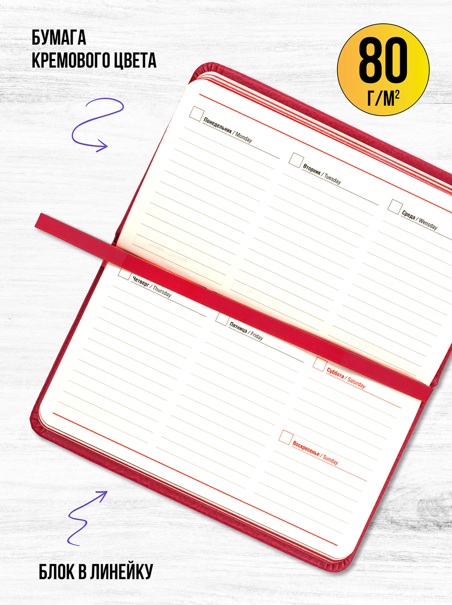 Недатированный формат позволяет начать использовать еженедельник в любое время, без привязки к календарю, не беспокоясь о том, что страницы будут пустовать. Это идеальное решение для тех, кто предпочитает гибкость в планировании.