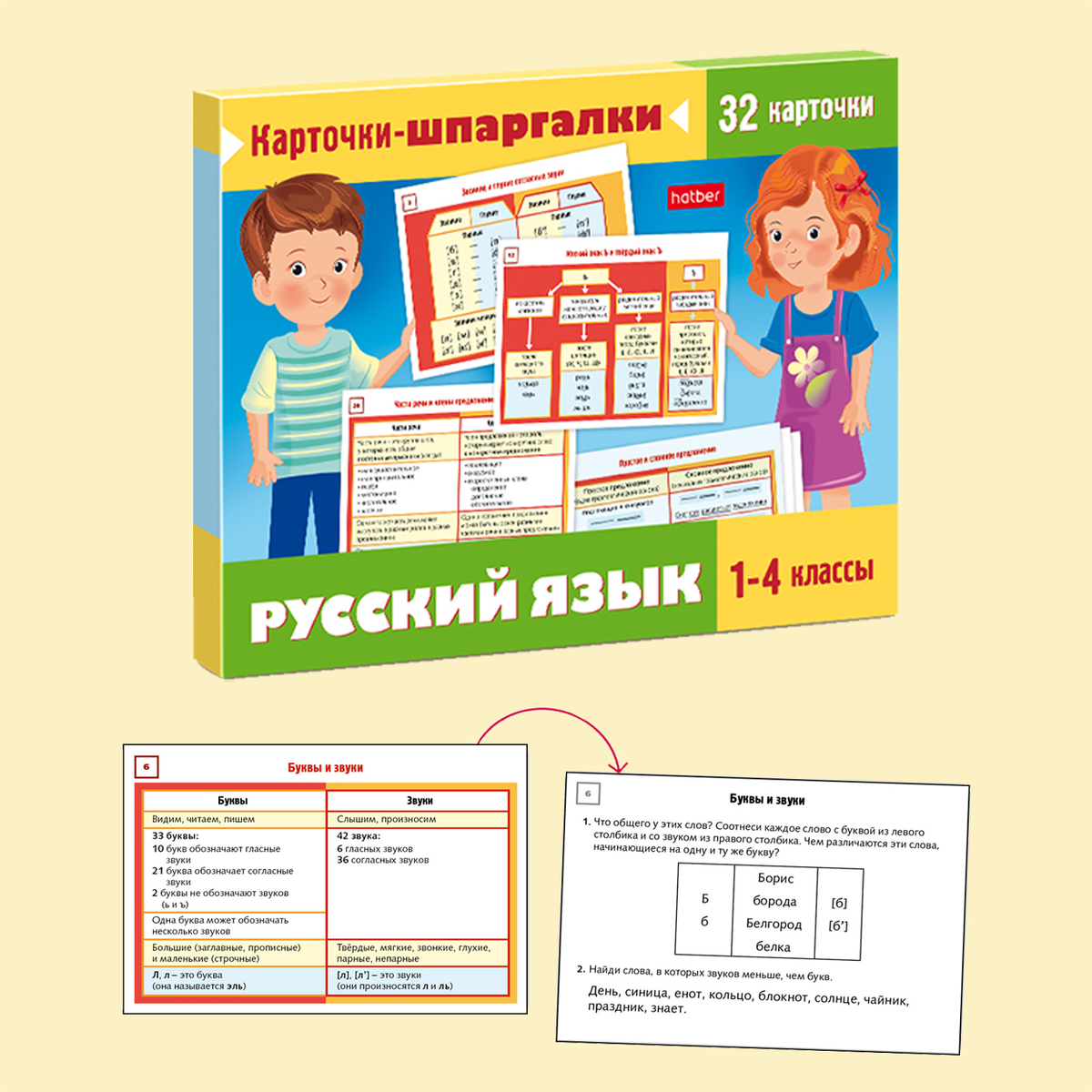«А что так можно было?» — будьте готовы услышать этот вопрос, когда ваше чадо увидит нашу новинку. Карточки-шпаргалки по русскому языку — это наглядные пособия из 64 карточек, выполненных из плотного картона. Простые и удобные в работе карточки помогут ребёнку повторить все темы и правила русского языка, изучаемые в начальной школе.