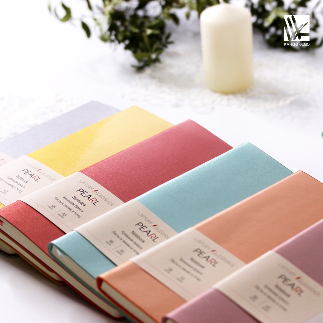 Классическая книга для записей PEARL А5-формата в изысканном исполнении. Перламутровая экокожа с эффектом глазури, кремовая бумага блока и ляссе создают простой и элегантный образ современного аксессуара рабочего стола для прекрасного пола.