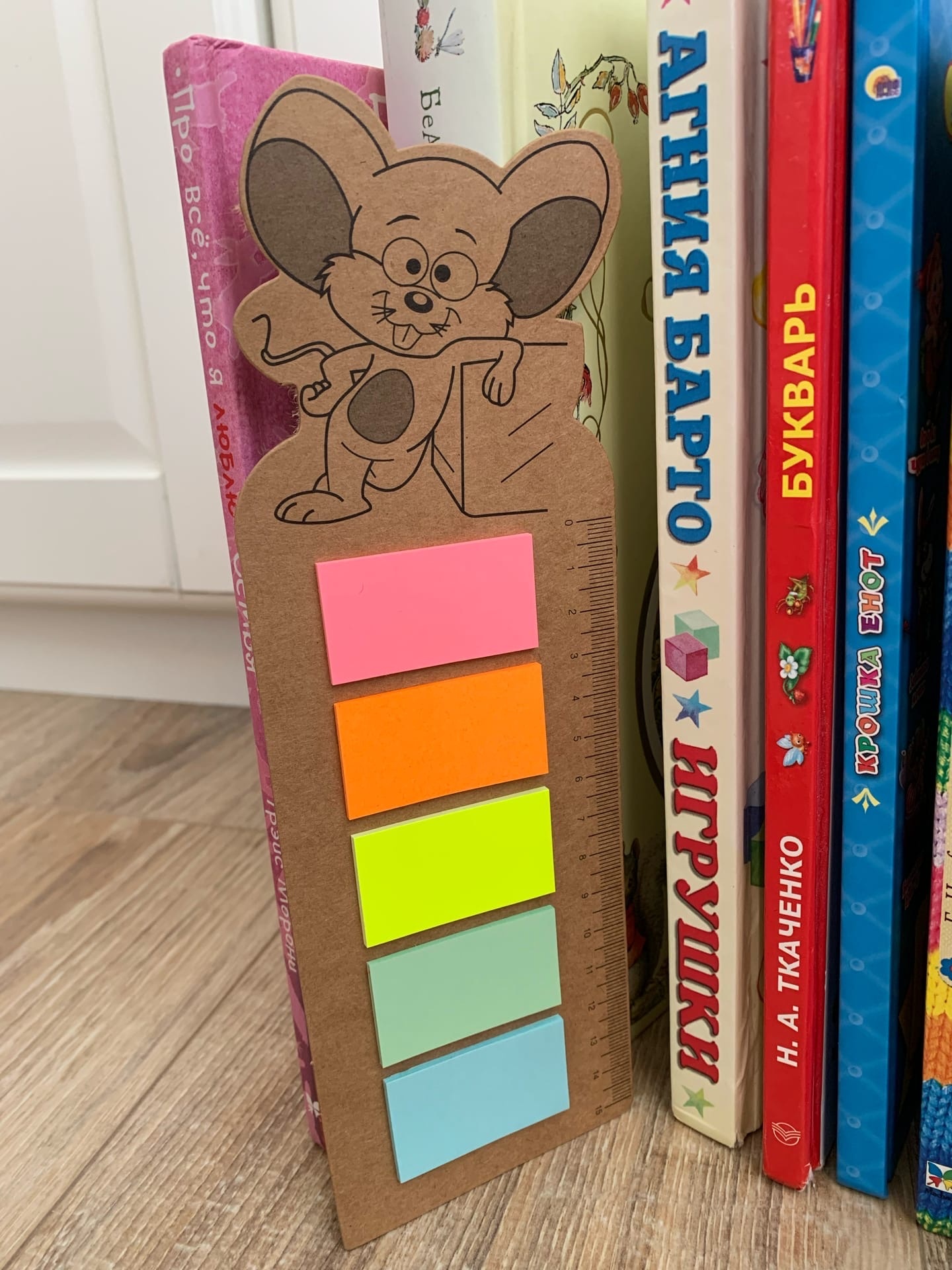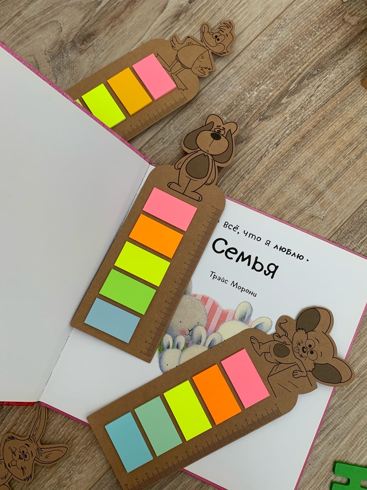 выделять интересные мысли по цветам, делать отметки на стикерах, использовать картонную линейку с забавным зверьком как закладку.