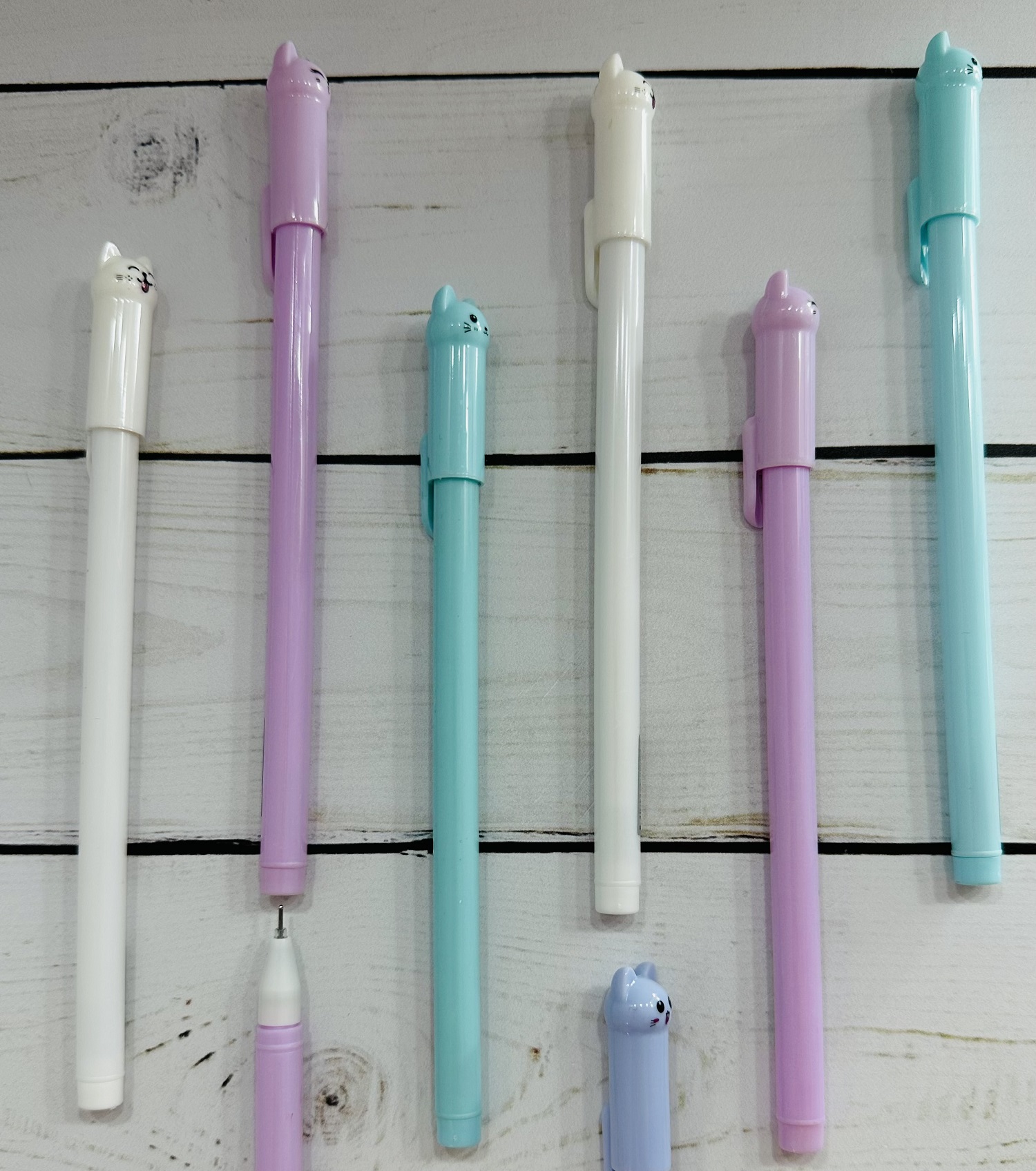 Гелевые ручки хорошо справляются со своими основными задачами, обладая всеми необходимыми характеристиками для комфортного письма. Изделия представлены в тонком пластиковом корпусе с фигурными дополнениями. Металлический наконечник диаметром 0,5 мм создаёт чёткие непрерывистые линии, обеспечивая плавное и мягкое письмо.