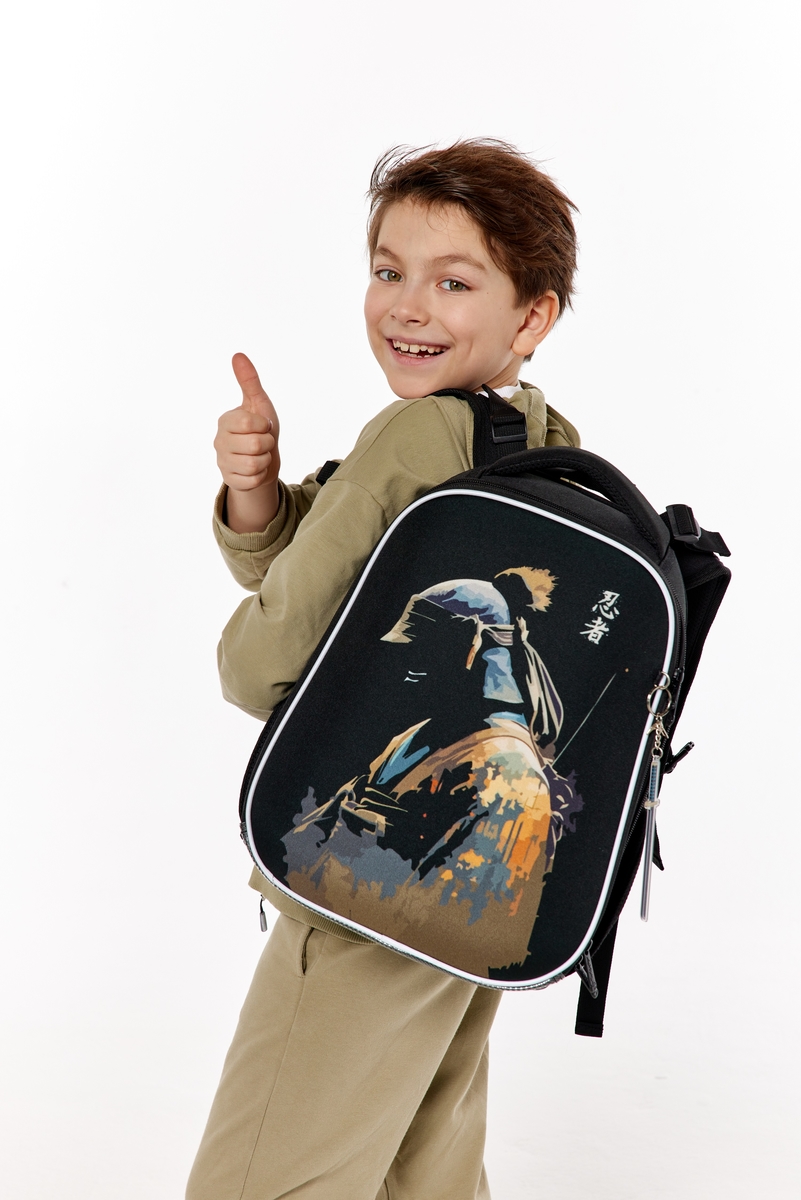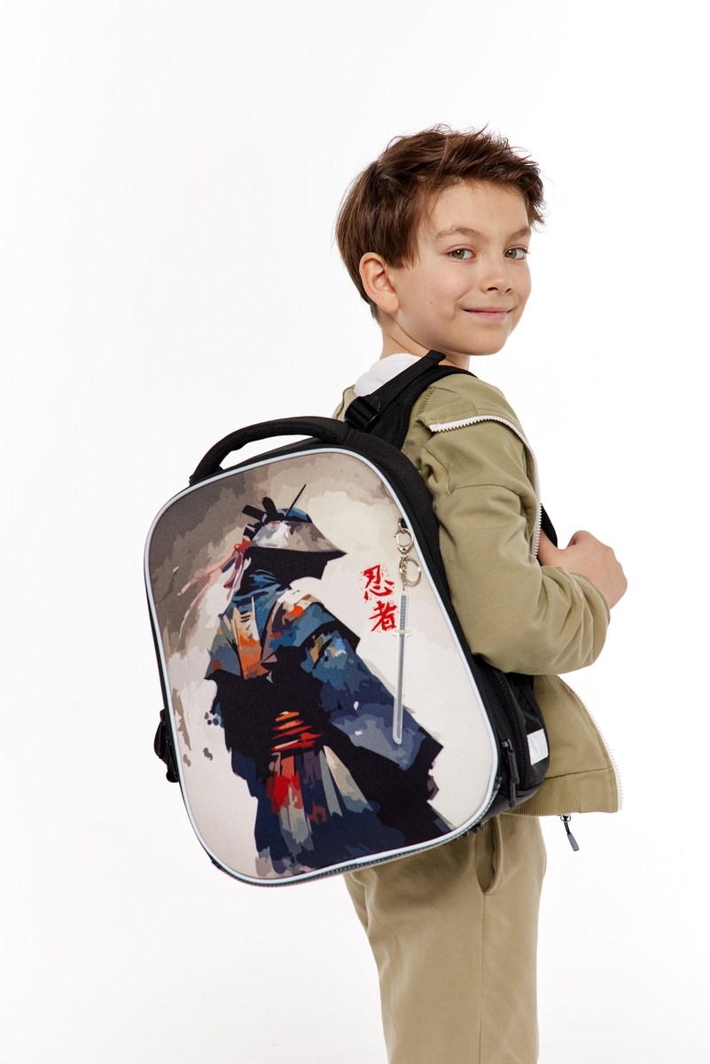 Лёгкий и комфортный школьный ранец в восточной эстетике продуман до мелочей! Спинка рюкзака повторяет анатомические изгибы позвоночника, равномерно распределяя нагрузку, а размер ранца, адаптирован к учебным пособиям начальной школы. Два вместительных внутренних отделения оснащены удобными органайзерами для мелочей, ключей и телефона. Расположенные по всему корпусу ранца светоотражающие элементы обеспечивают дополнительную безопасность на дороге, а резиновые ножки, пришитые к непромокаемому дну, защищают его от загрязнений и повреждений.