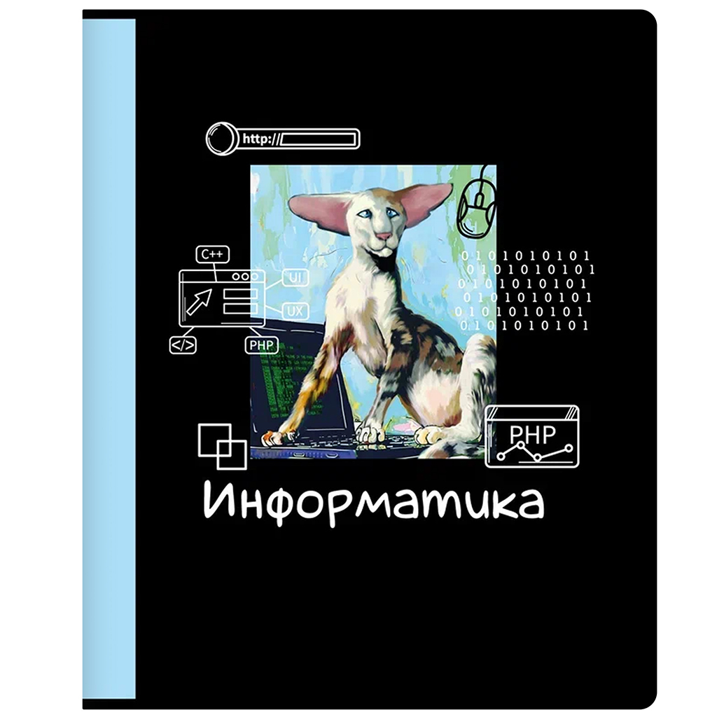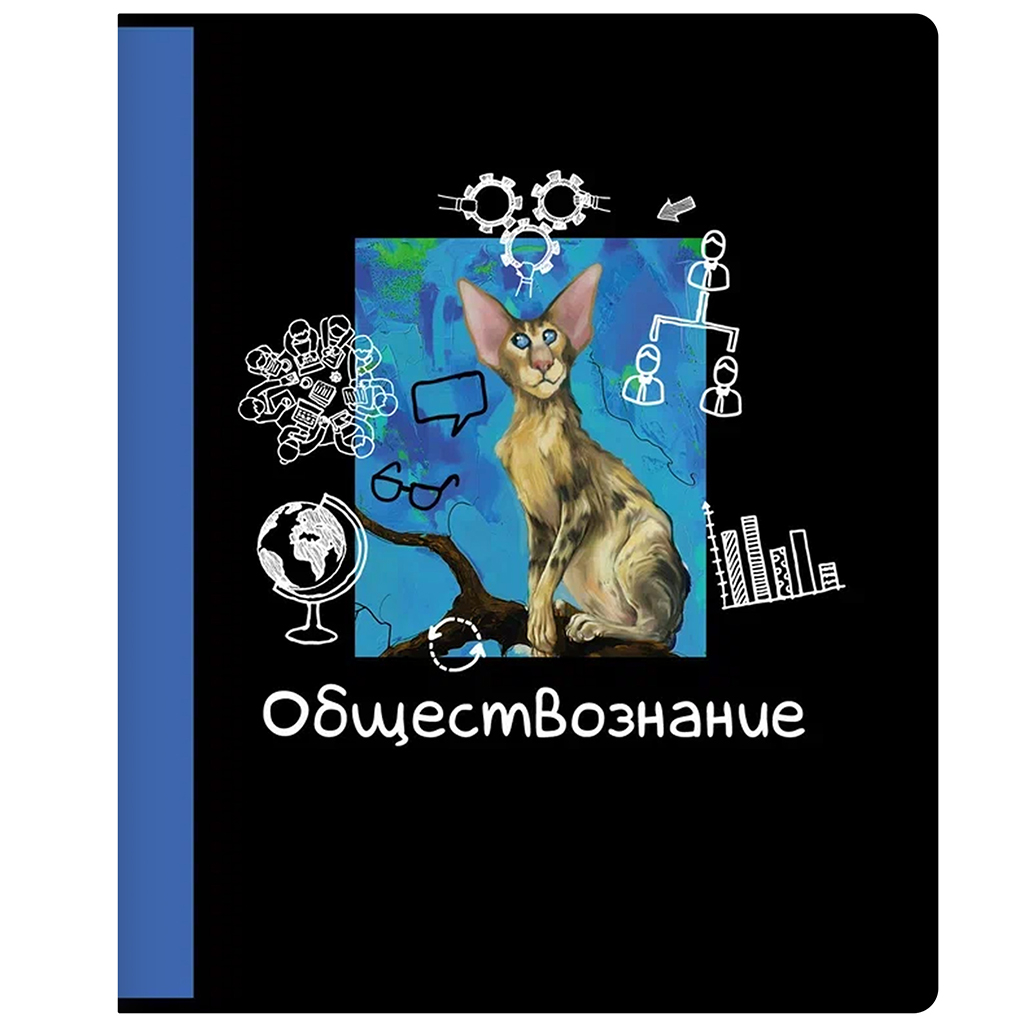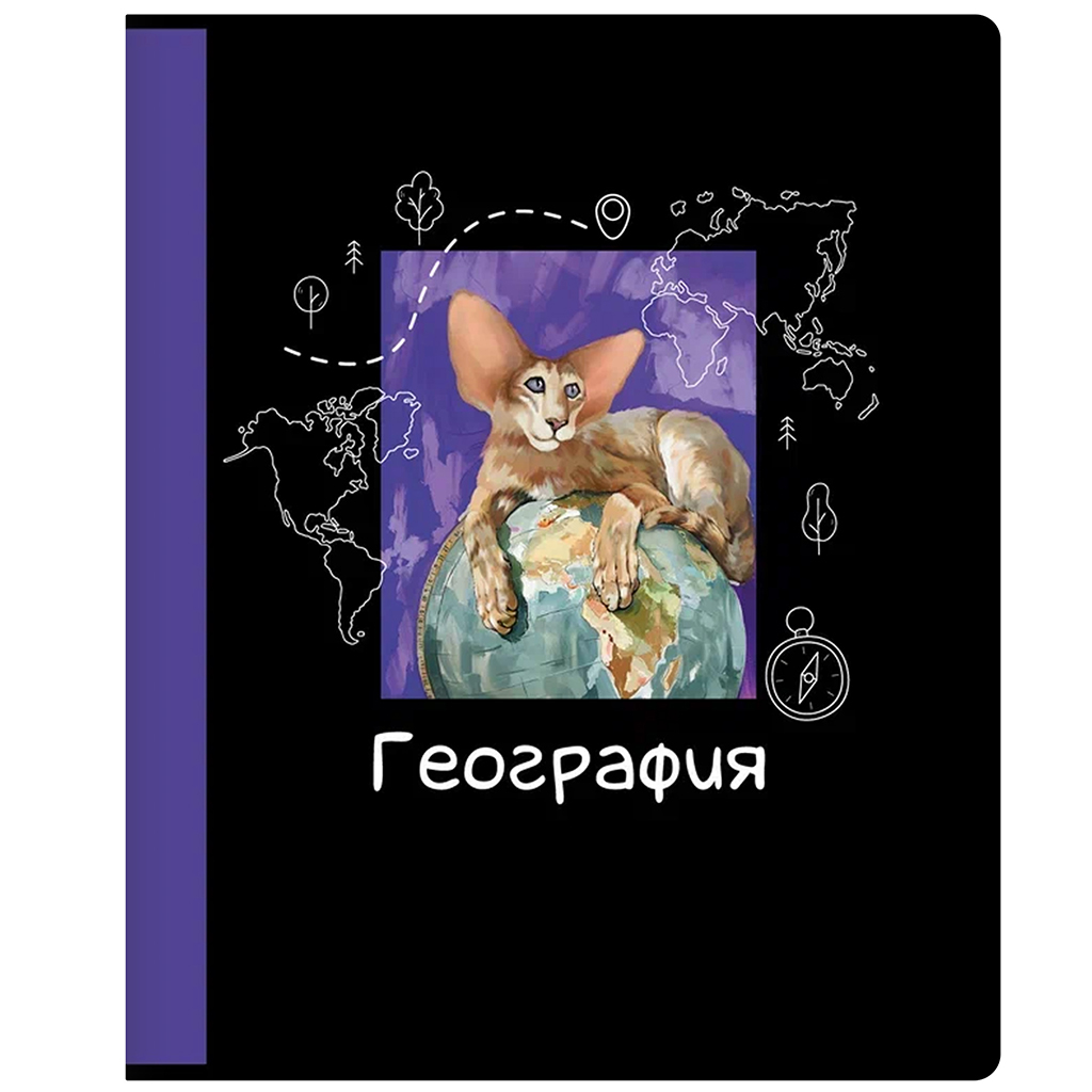 Чёрный градиент с добавлением ушастых котиков придётся по вкусу мальчикам и девочкам. Обложки тетрадей выполнены из мелованного картона. Глянцевая печать рисунка гармонично дополняет дизайн.