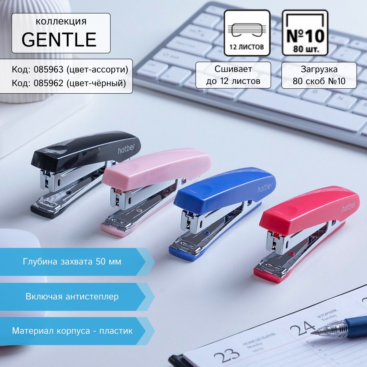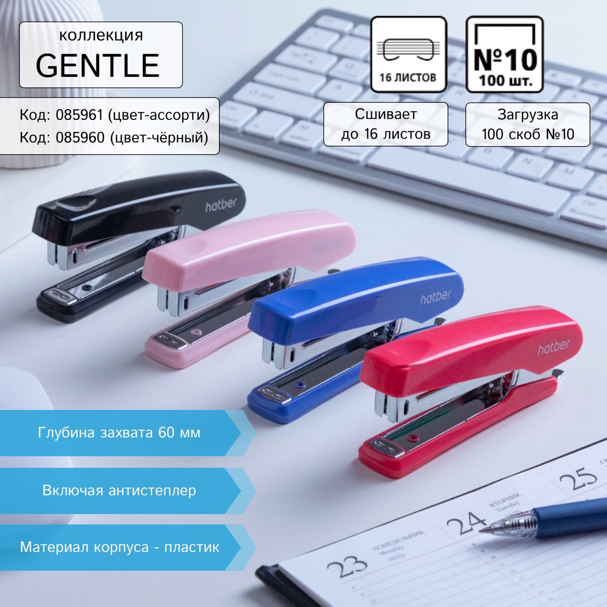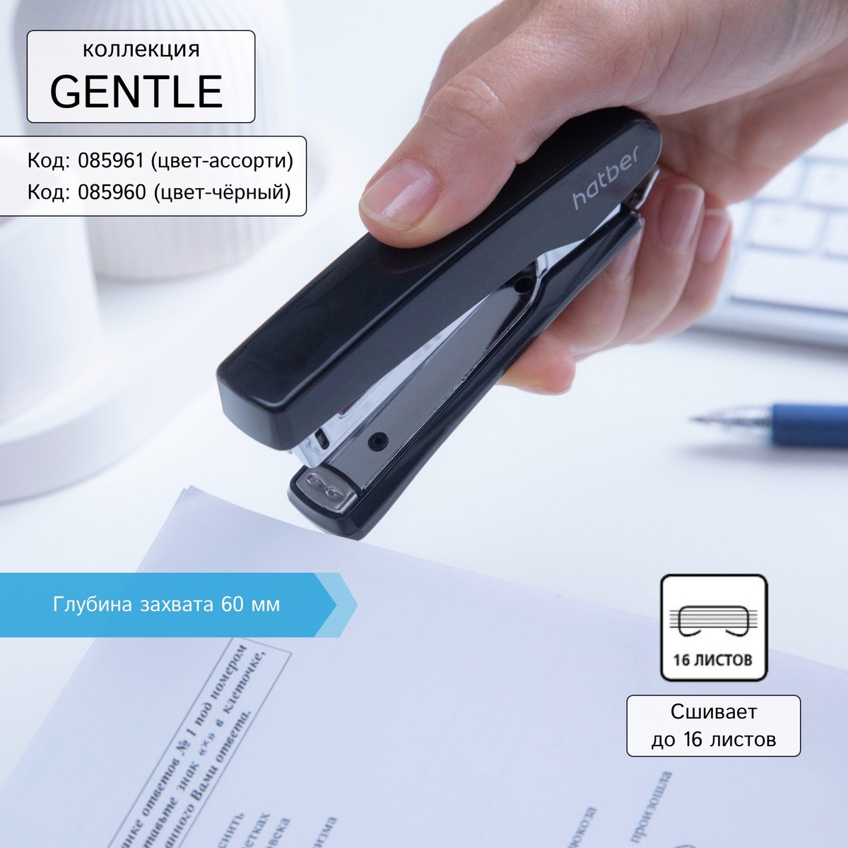 Элегантная плавная форма и оригинальный цвет каждой модели превратят степлер Gentle от Hatber в нужный и яркий элемент рабочей канцелярии.