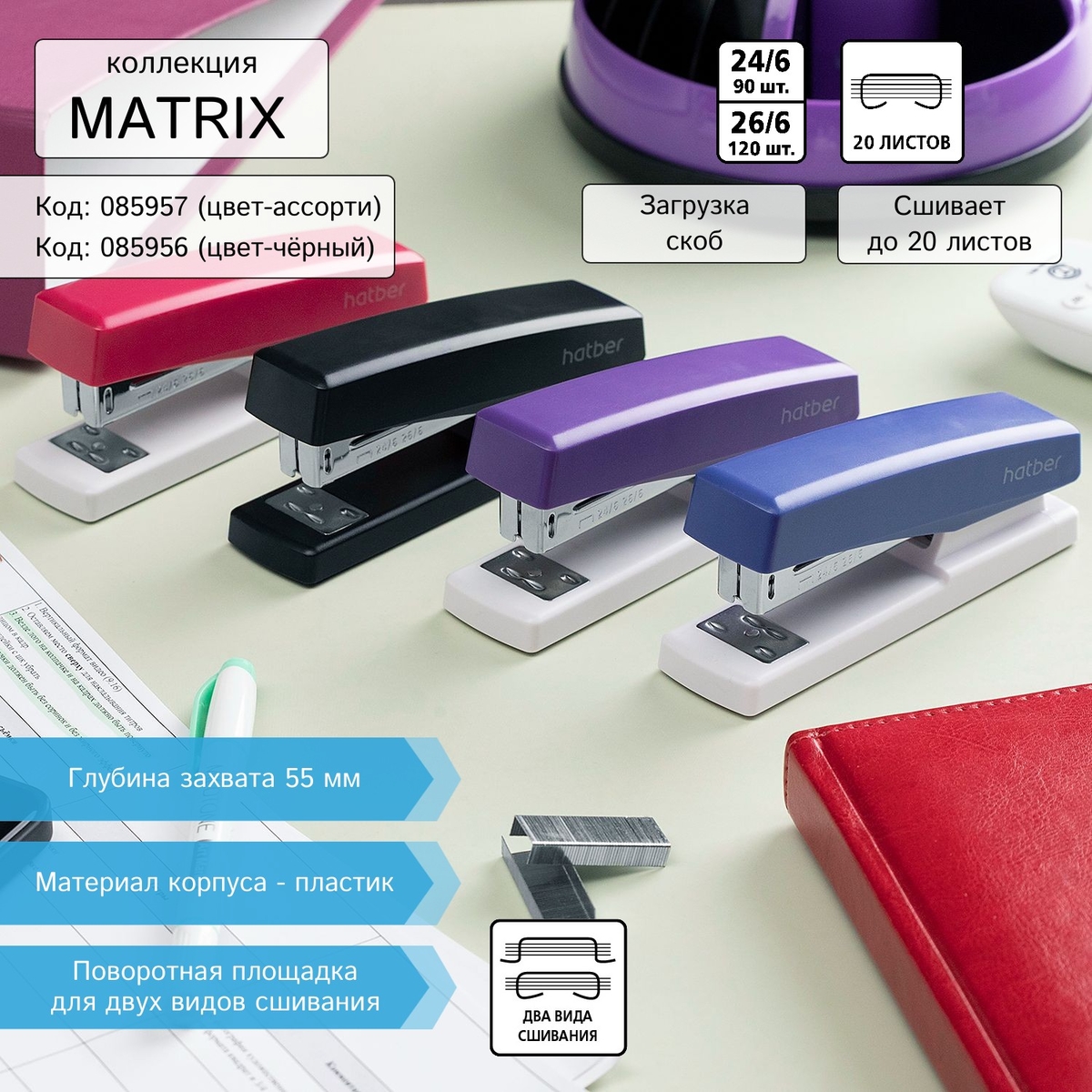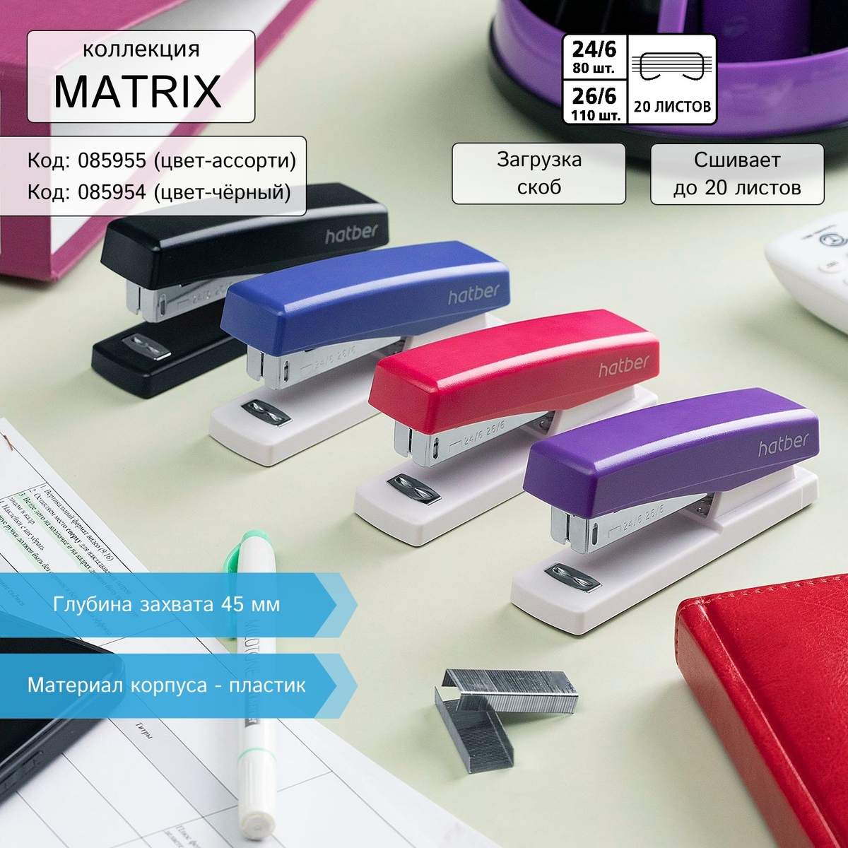 Hatber представляет изящные и оригинальные степлеры, а также зубастые антистеплеры из коллекции Matrix.