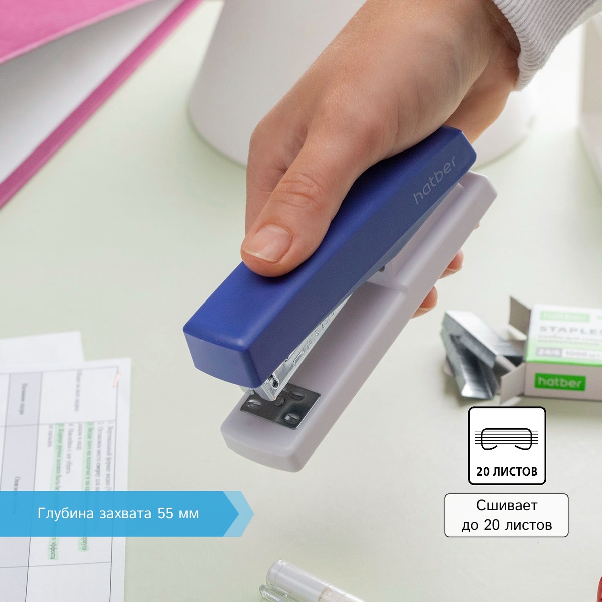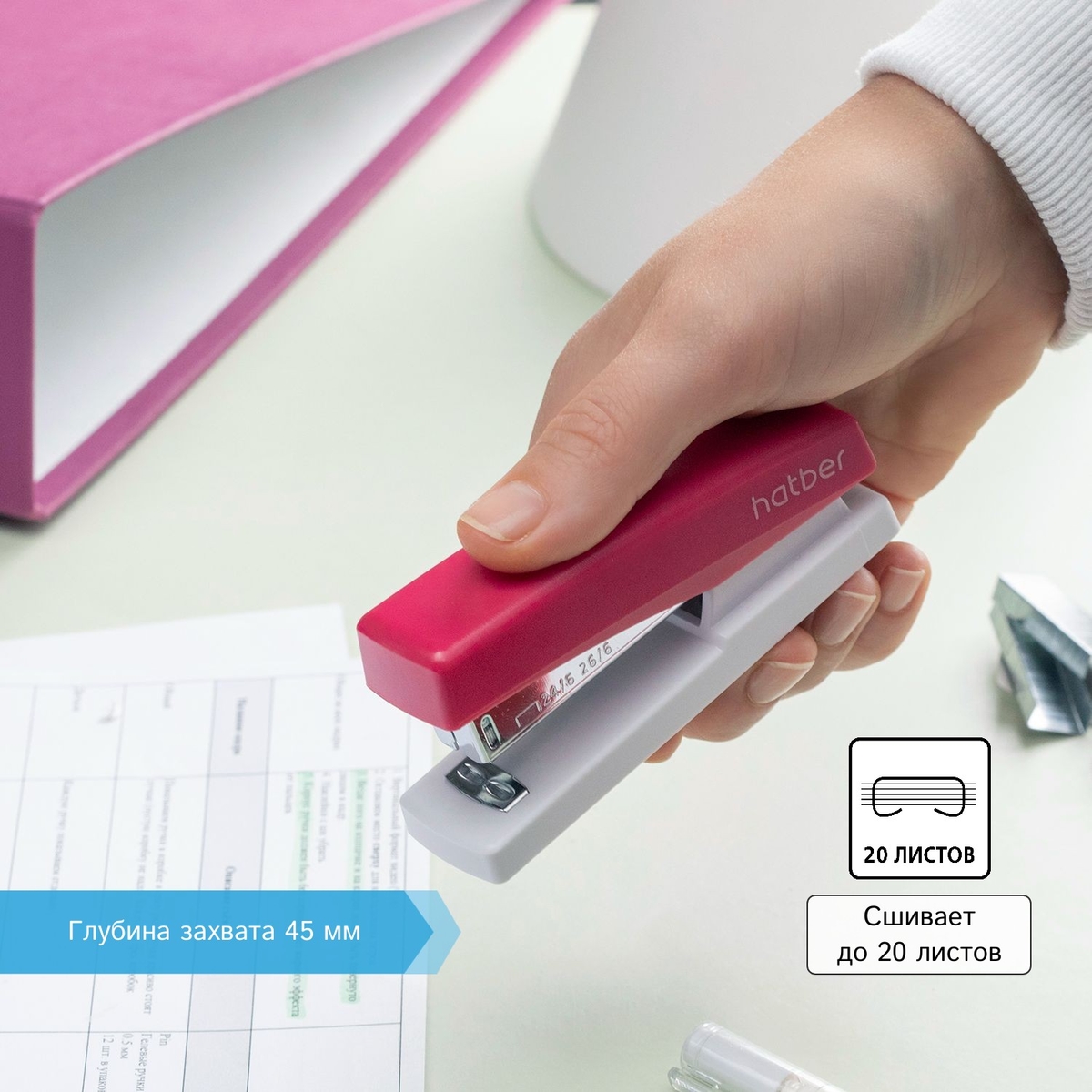 Сшивает: до 20 листов.