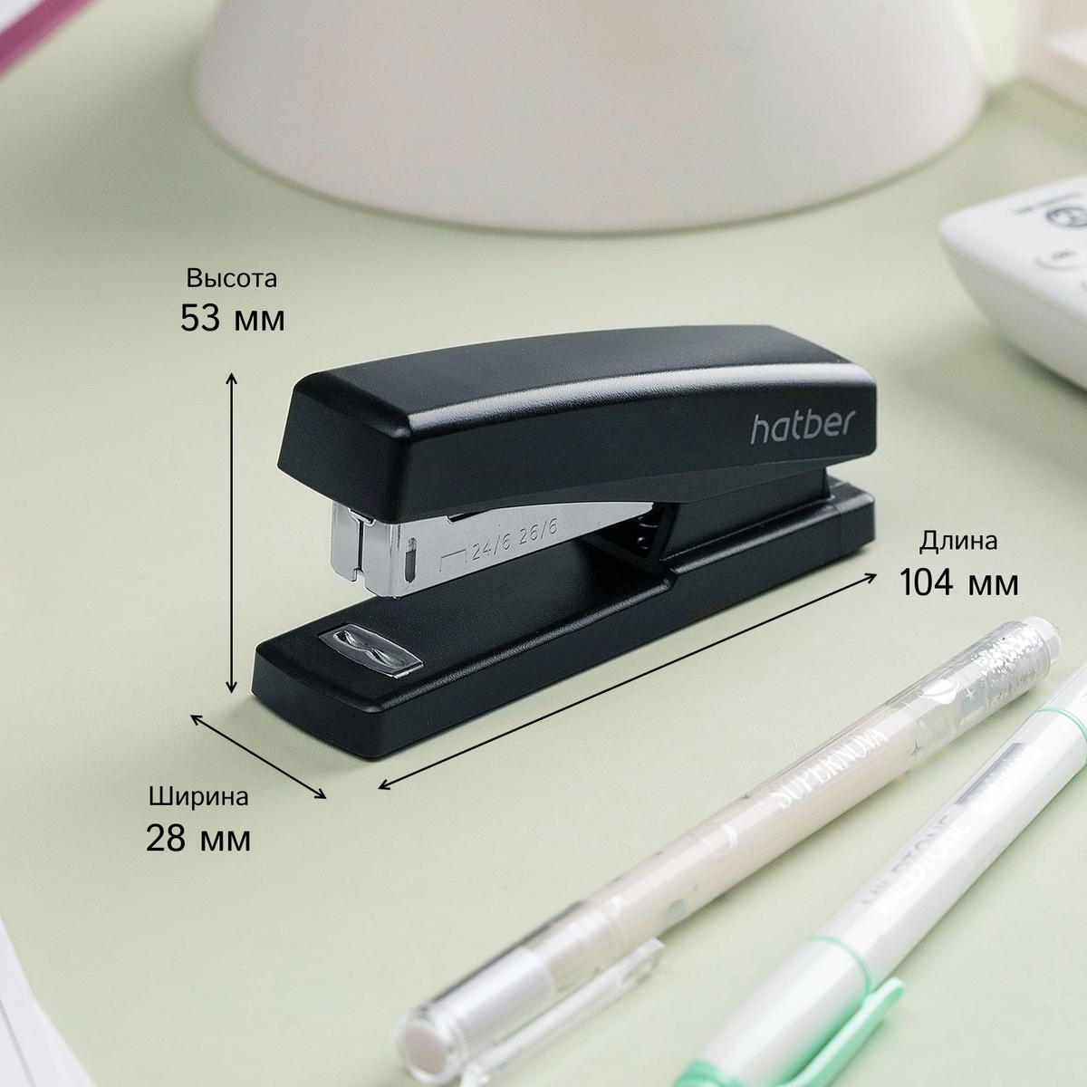 Белые основания степлеров дополнены цветными деталями корпуса, выглядят стильно и современно. Но для любителей строгой офисной классики представлен и черный вариант корпуса.